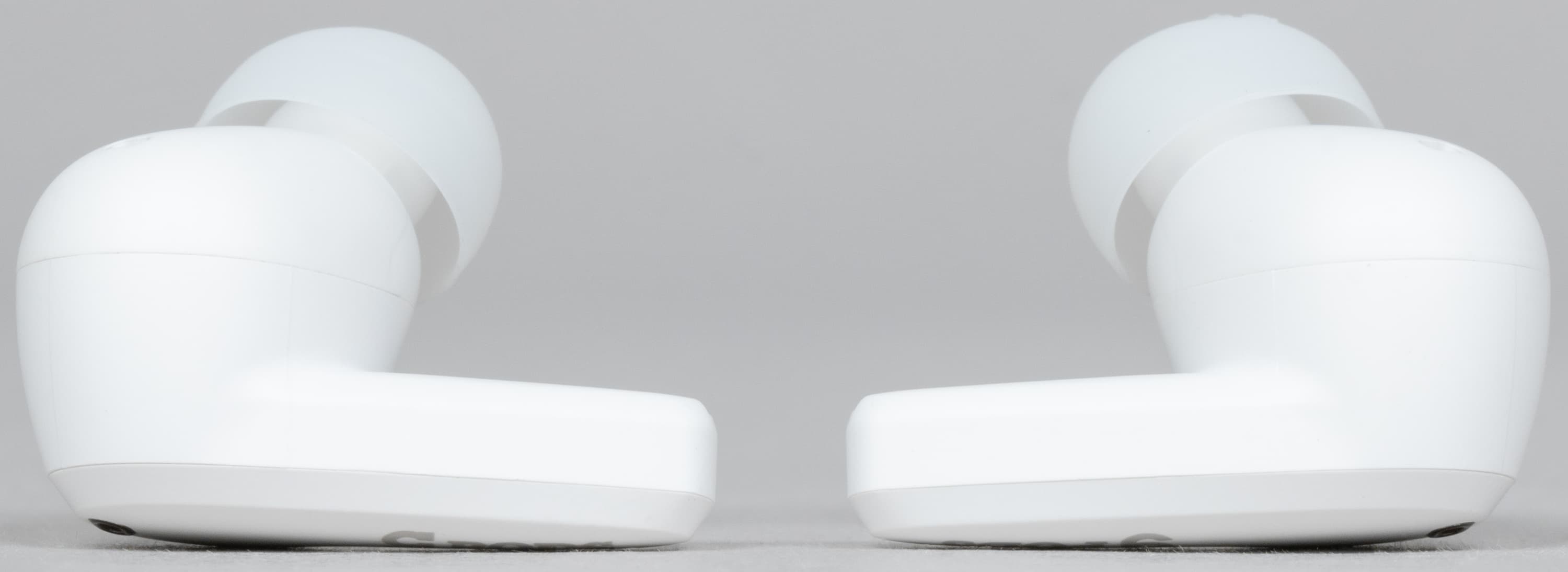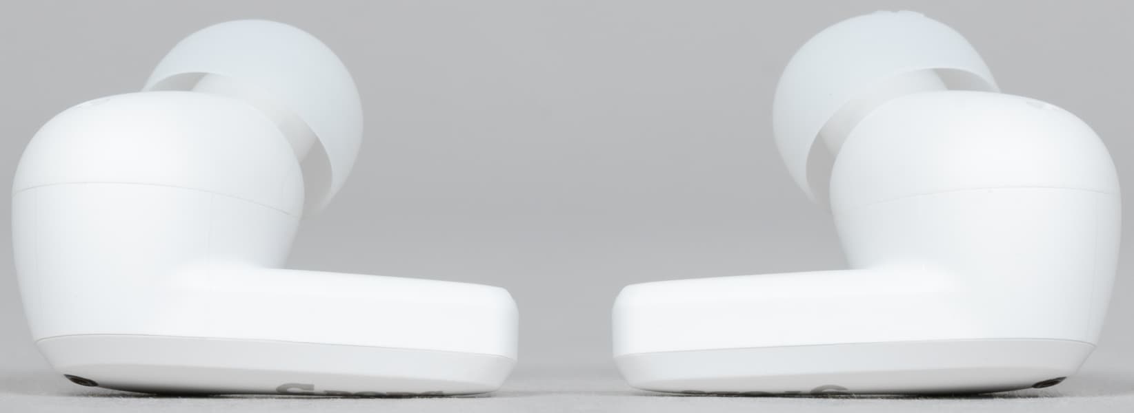 Сами наушники выполнены в привычном формате «с палочкой». При этом форма удлиненной части выбрана необычная — с ярко выраженными гранями и уплощенной передней и задней поверхностями.