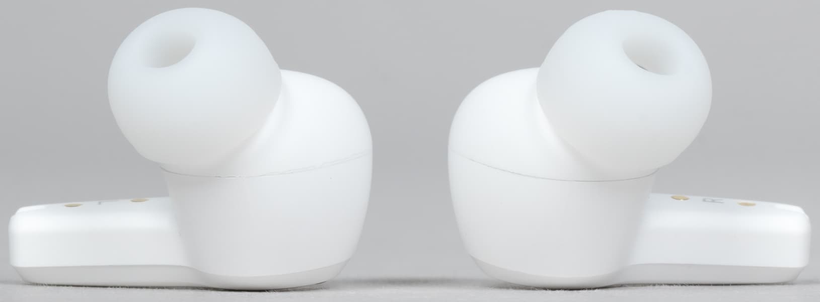 Звуковод выходит из корпуса под углом и обладает средней длиной, а значит — не будет слишком глубоко погружаться в слуховой проход, вызывая дискомфорт.