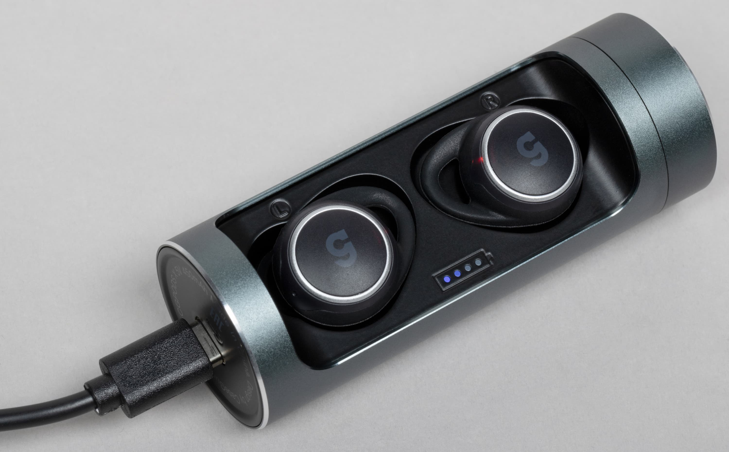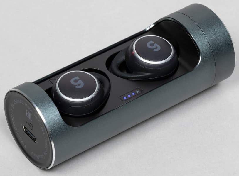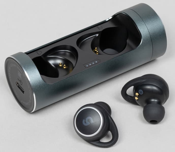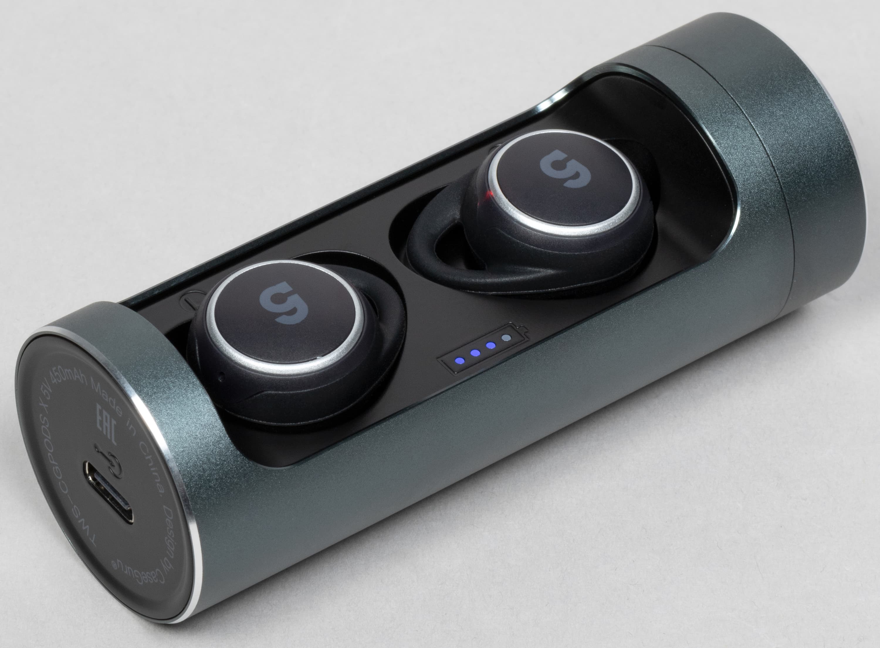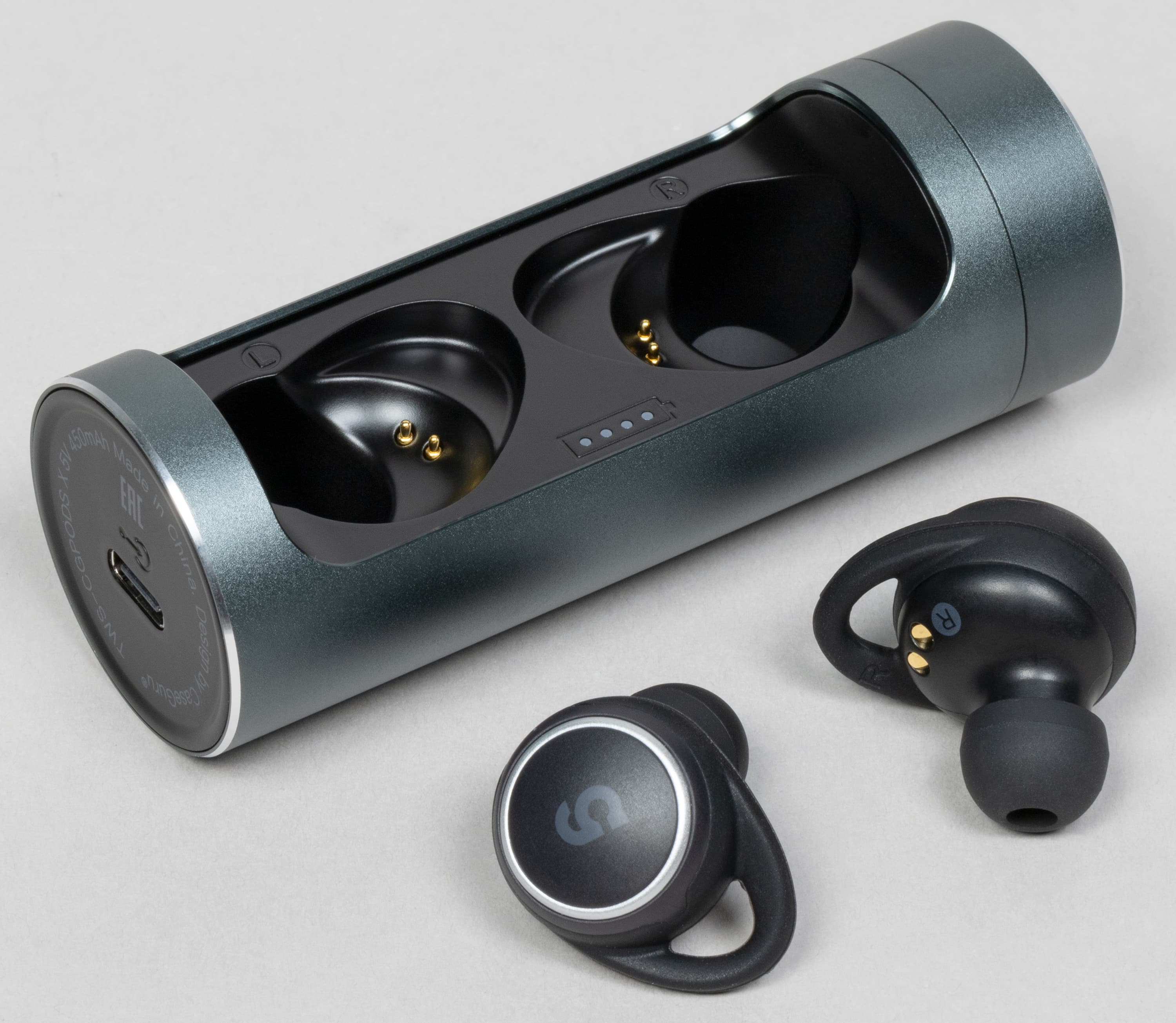 Более 5 часов от одной зарядки — это уже совсем неплохо. При этом кейс может зарядить наушники еще три раза, на четвертый зарядка стартовала, но быстро прервалась. В итоге мы имеем порядка 22 часов работы — хватит на пару дней активного использования, если не забывать иногда убирать наушники в кейс. Зарядка самого кейса с нуля у нас заняла около полутора часов.