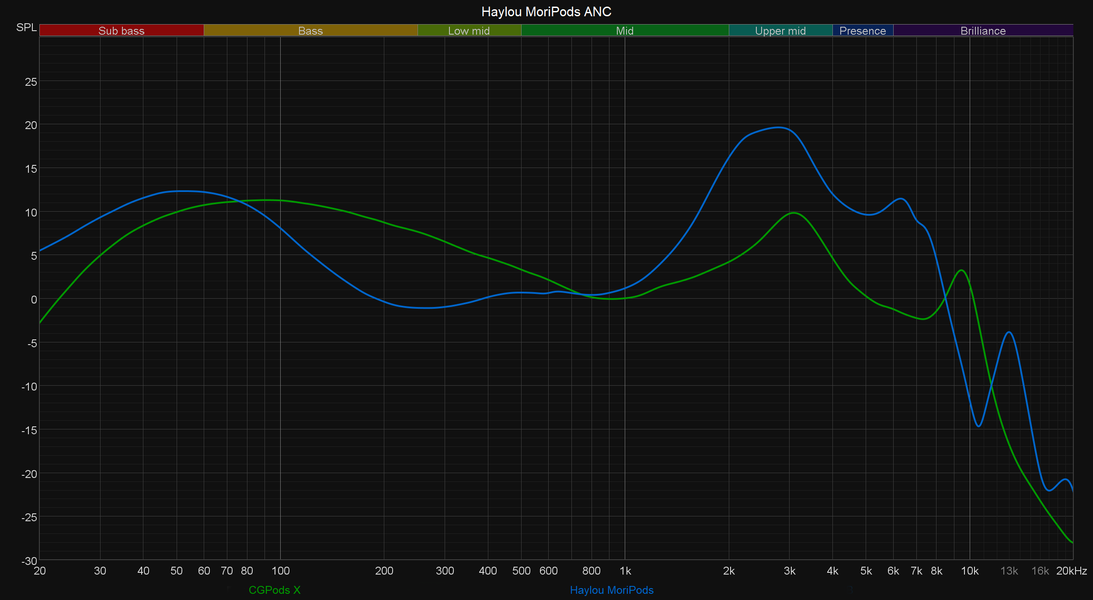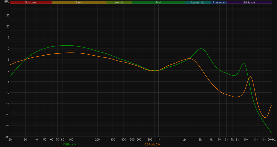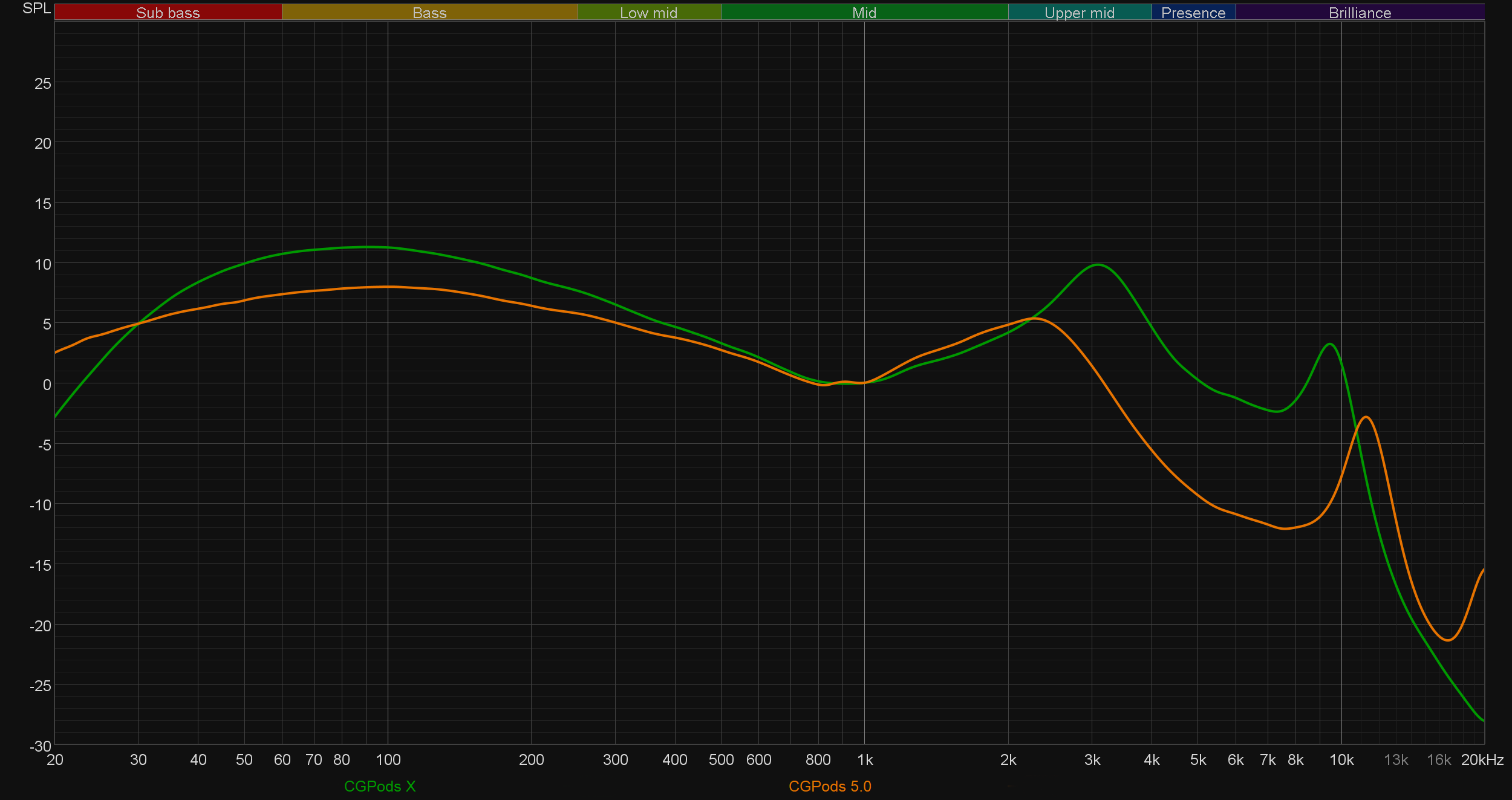 И вот на последнем графике всё как на ладони — он максимально полно иллюстрирует субъективные впечатления от наушников. Если вы любите, чтобы «гудело и бабахало», CaseGuru CGPods X — ваш выбор.