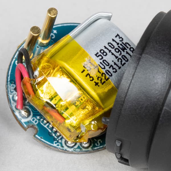 Аккумулятор тот же: судя по маркировке, его емкость составляет 0,19 Вт·ч, номинальное напряжение 3,7 В. Что в итоге дает нам примерно 51 мА·ч — чуть меньше заявленного, но в рамках разумного.