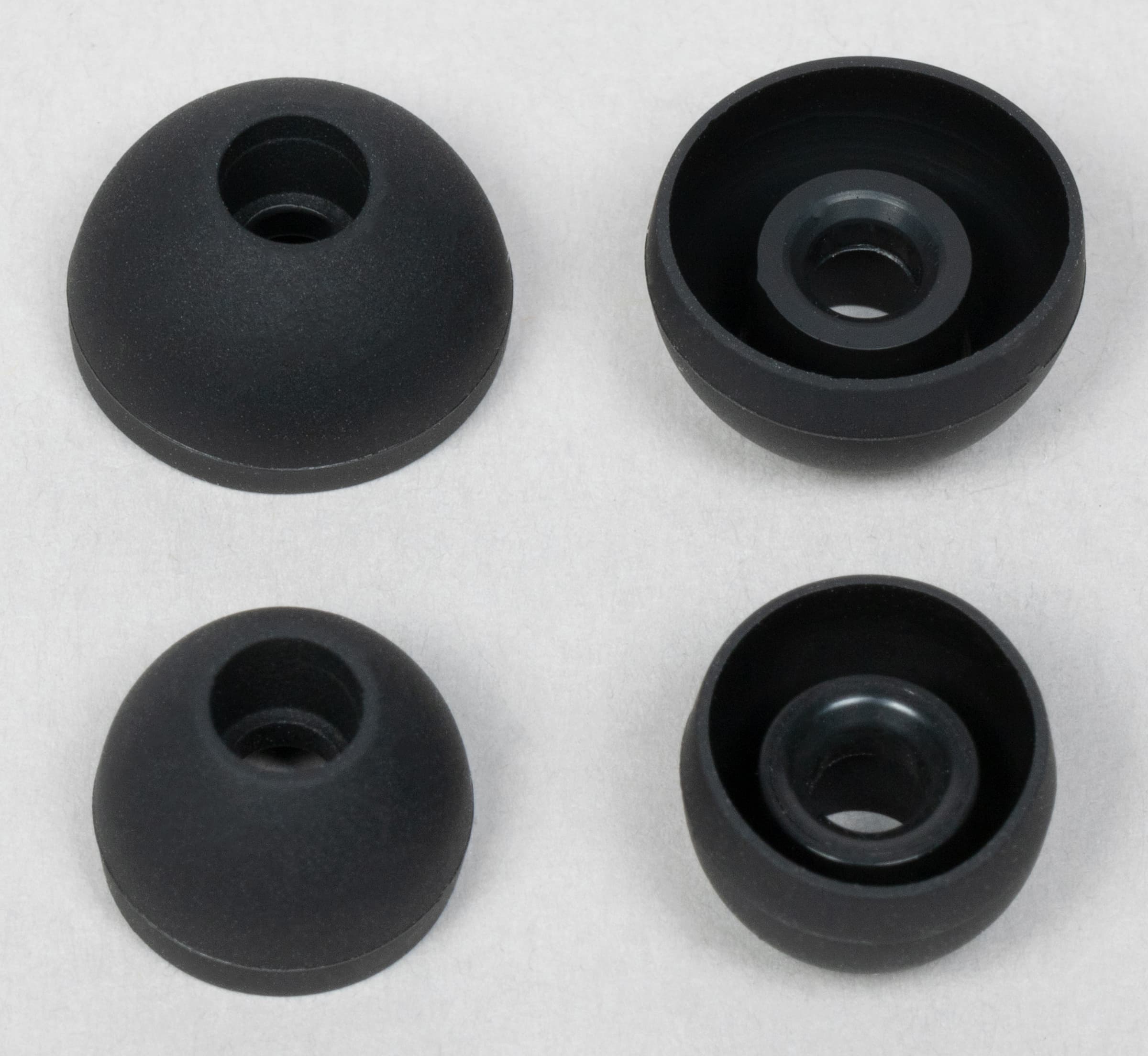 Силиконовые насадки и ушные дуги выглядят слегка иначе, чем у прошлой модели. Слегка изменилась форма, а главное — они стали чуть опрятнее (как минимум, меньше видны следы отливки).