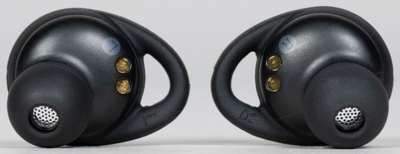 Короткое однократное нажатие управляет воспроизведением, при длинном касании (более двух секунд) правого наушника запускается следующая композиция, левого — предыдущая. Двойной тап аналогичным образом управляет громкостью. Однократное нажатие вновь не заблокировано, так что велик риск случайных срабатываний: поправить положение гарнитуры в ухе, не поставив воспроизведение на паузу, действительно сложно.