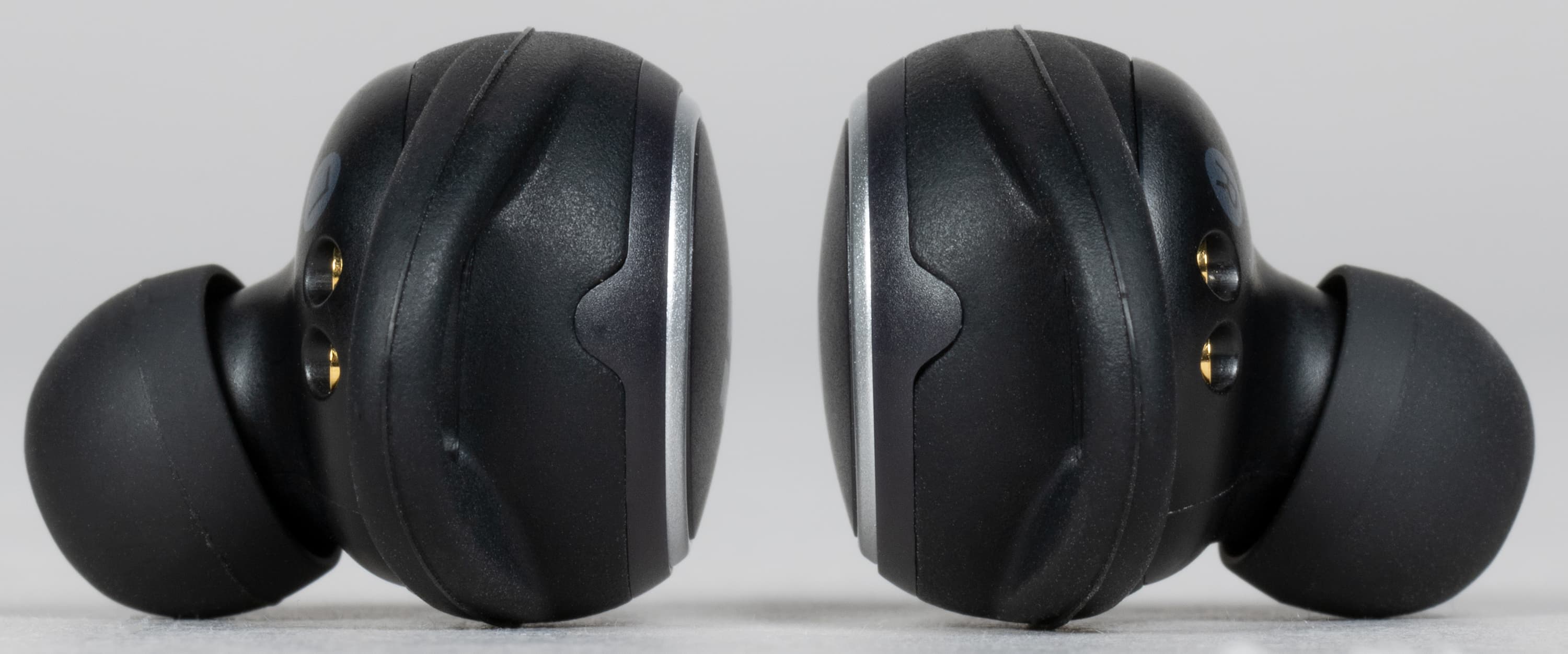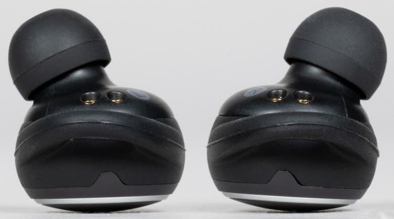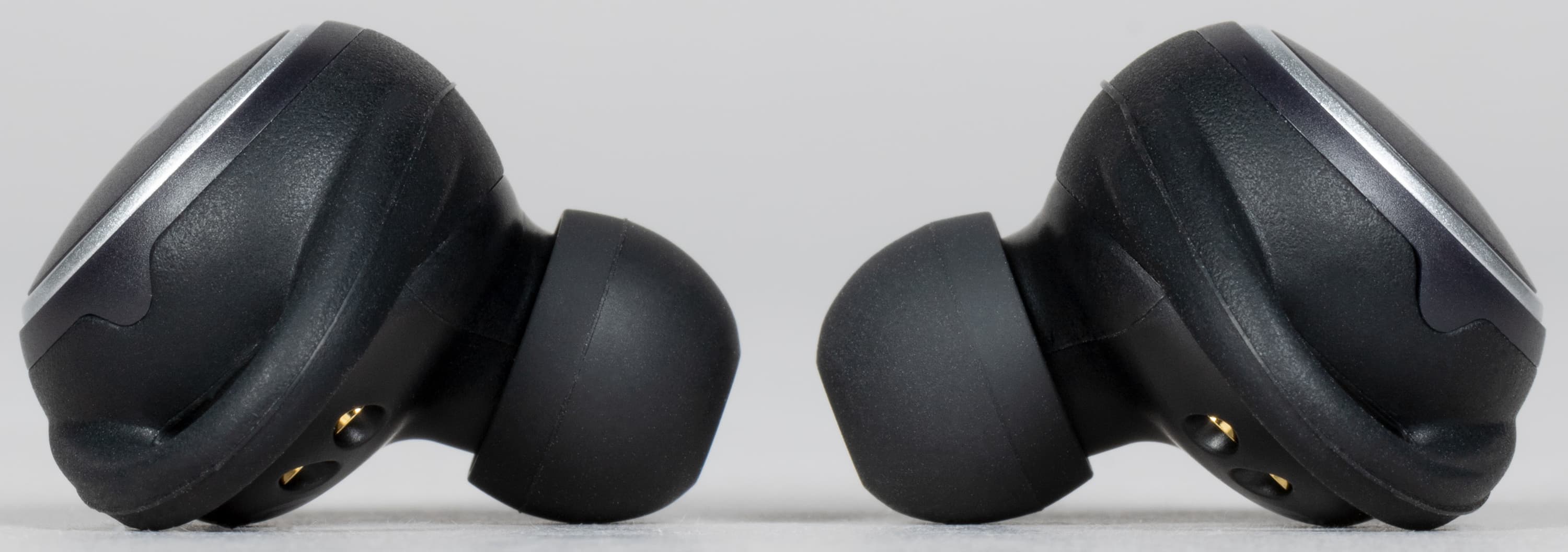 Корпус же наушников просто остался прежним. Контакты для зарядки расположены чуть ближе к поверхности, но тут уже речь, скорее, про внутреннее наполнение.