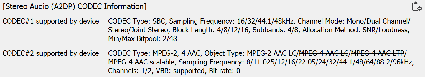 Мультипойнт CaseGuru CGPods по-прежнему не поддерживает, что для «лучших наушников», конечно, не дело. С помощью утилиты Bluetooth Tweaker был получен полный список поддерживаемых кодеков и их режимов. Тут без сюрпризов — SBC и AAC, как и у большинства бюджетных гарнитур.
