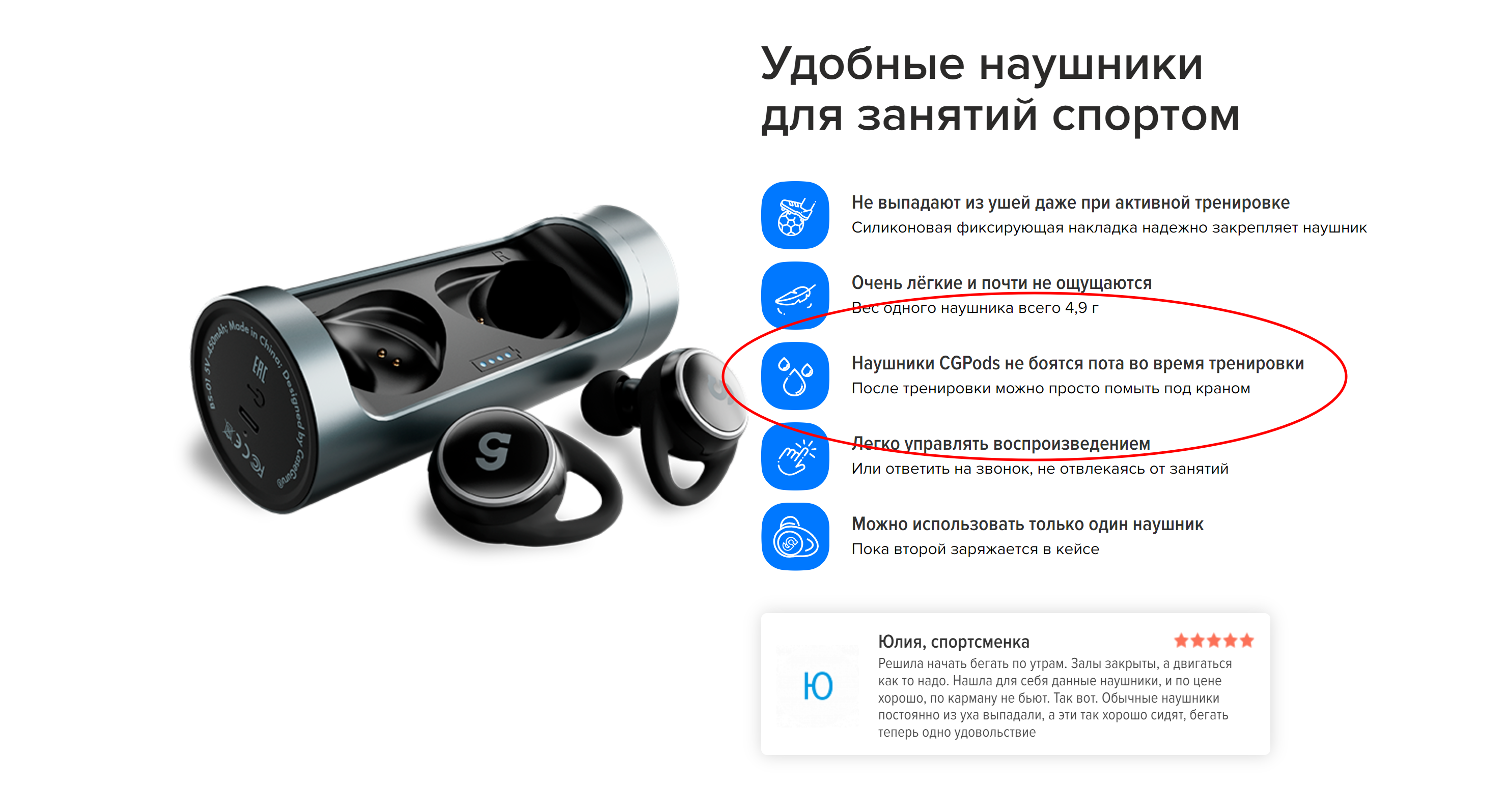 Ну и снова история про душ. В одном из видео про наушники CGPods 5.0 показано, что в них можно принимать душ — мол, защита от воды позволяет. Прошлое тестирование показало, что не очень-то и позволяет, но даже это не главное. Хуже, что сенсор срабатывает при попадании на него воды, воспроизведение останавливается, треки переключаются — в общем, не получается слушать CGPods в душе. Впрочем, не особо-то хотелось, честно говоря — вряд ли это действительно сильно востребованная опция. А вот возможность после активного использования помыть наушники под краном — это действительно полезно.