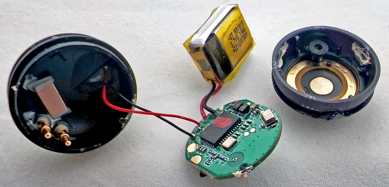 Раз можно мыть — моем. Заявлена защита IPx6, то есть наушники должны выдерживать мощные струи воды со всех направлений. Мы решили не слишком усердствовать и просто в течение 10 минут вращали наушник под струей средней силы — ровно такой, которую использовали бы для того, чтобы его помыть. Всё прошло отлично, наушник прекрасно работал после «купания». Потом мы его разобрали и не обнаружили внутри никаких следов проникновения жидкости, в чем можно убедиться на фотографиях выше.