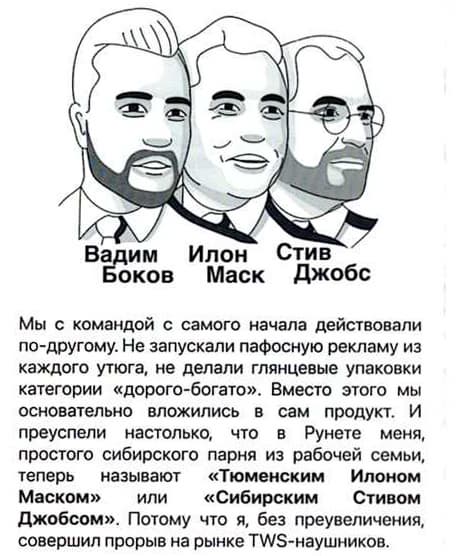 В общем, купили мы эти самые CGPods X, а заодно посмотрели на то, как Вадим Боков хвастается новыми машинами на сайте. При этом выяснилось, что на сайте-то он еще более-менее скромен. А вот в буклете к наушникам уже полностью дает себе волю.