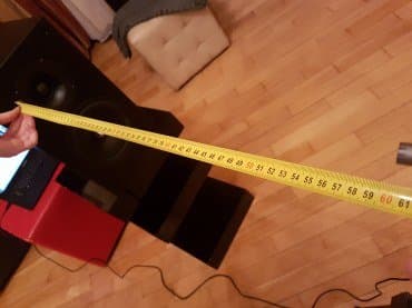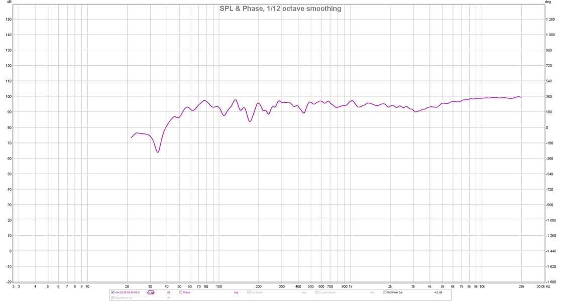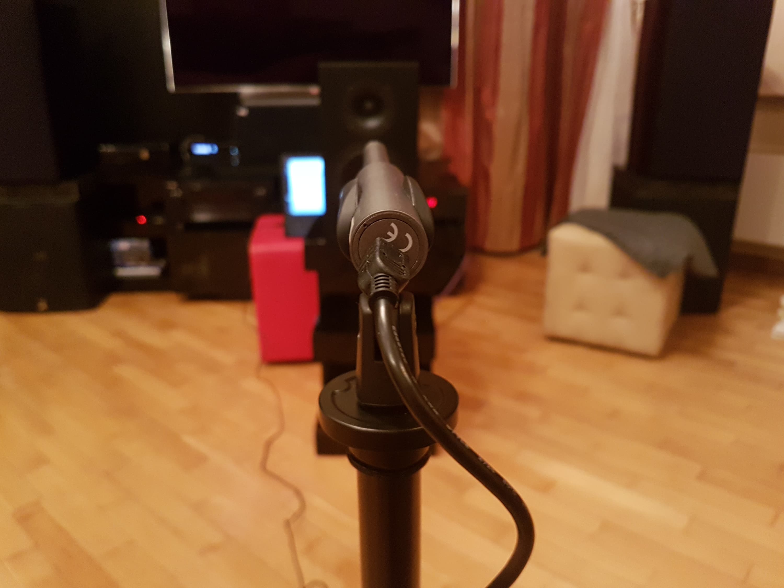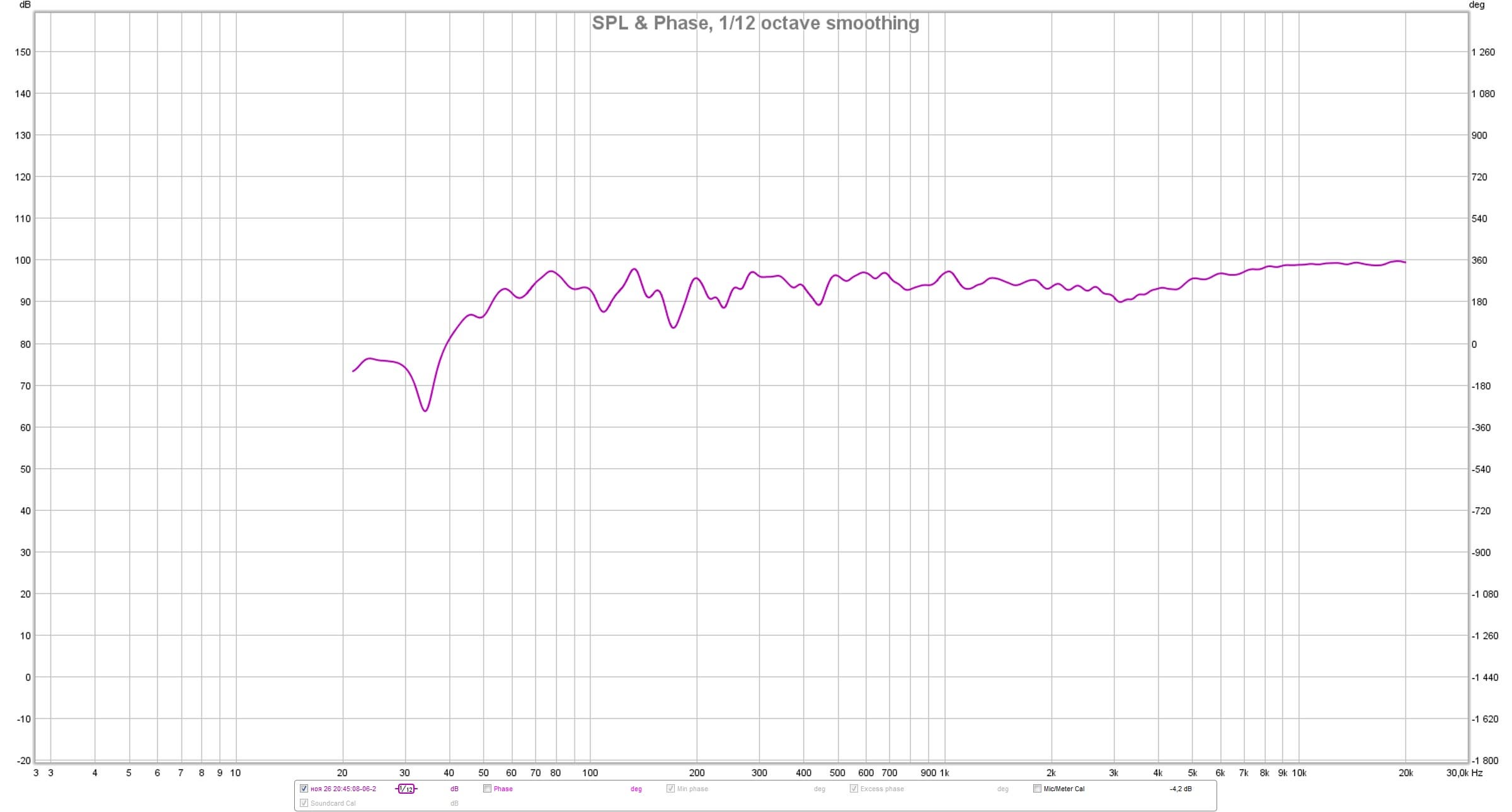 Микрофон установлен на штативе на высоте твитера и направлен в его центр. Измерение проведено для одной из колонок на расстоянии 60 см. Измерение с расстояния в 1 м коррелирует с измерением в 60 см.