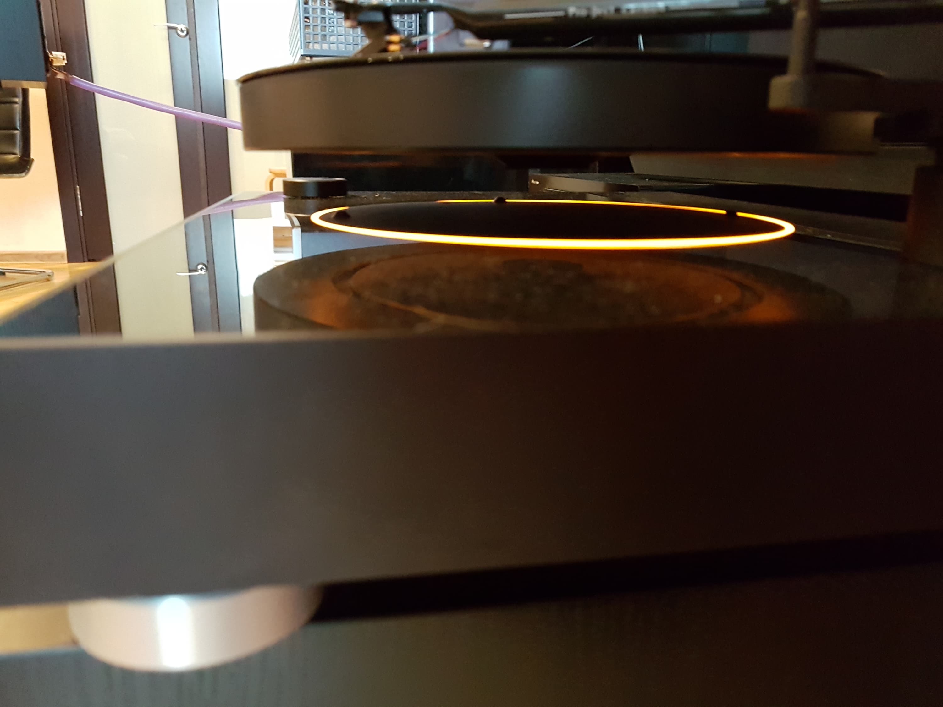 При включении проигрывателя (и установке тонарма в режим проигрывания пластинки) ножки, удерживающие диск, задвигаются в стол, и диск висит над корпусом, одновременно выполняя свою функцию — вращается с нужной скоростью. Футуристическую картину дополняет оранжевая круговая LED-подсветка. Не правда ли, хороший предлог затащить девушку домой? А если такого желания или возможности нет — насладиться зрелищем в компании домашних или друзей или даже в одиночестве. Полумрак необязателен, но крайне рекомендован.