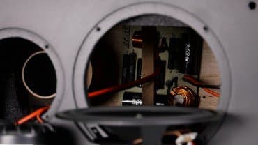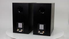 Корпус колонки сделан из MDF c довольно толстыми стенками и имеет отделку натуральным шпоном, что снова нас приятно удивило, как и при знакомстве с Classic 1. Вес колонки не изменился и составляет 7 кг. Постукивание по колонке дает тот же результат: звук удара по цельному дереву. Звукопоглотитель, битумный лист и относительно толстые стенки действительно работают. Забегая вперед, сообщаем, что никаких паразитных призвуков резонансов корпуса при прослушивании на любой громкости замечено не было. Тыл колонки очень похож на Classic 1 — тот же большой порт фазоинвертора, призванный обеспечить отсутствие призвуков от воздуха, проходящего через порт, и пара внушительных акустических клемм.