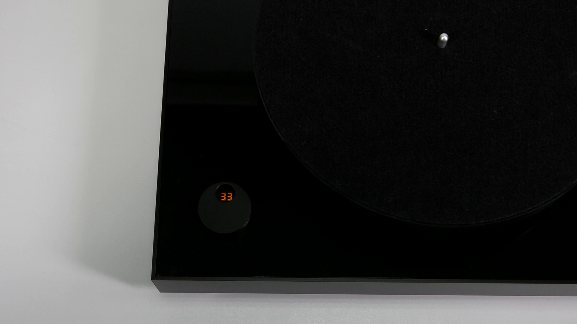 При сборке проигрывателя поставить опорный диск на стол с первого раза не получилось — настолько сильно он отталкивается от стола, даже в выключенном состоянии. Переключатель оборотов «33» и «45» совмещен с выключателем проигрывателя, и цифры выбранных оборотов светятся тем же оранжевым светом, что и круговая подсветка стола.