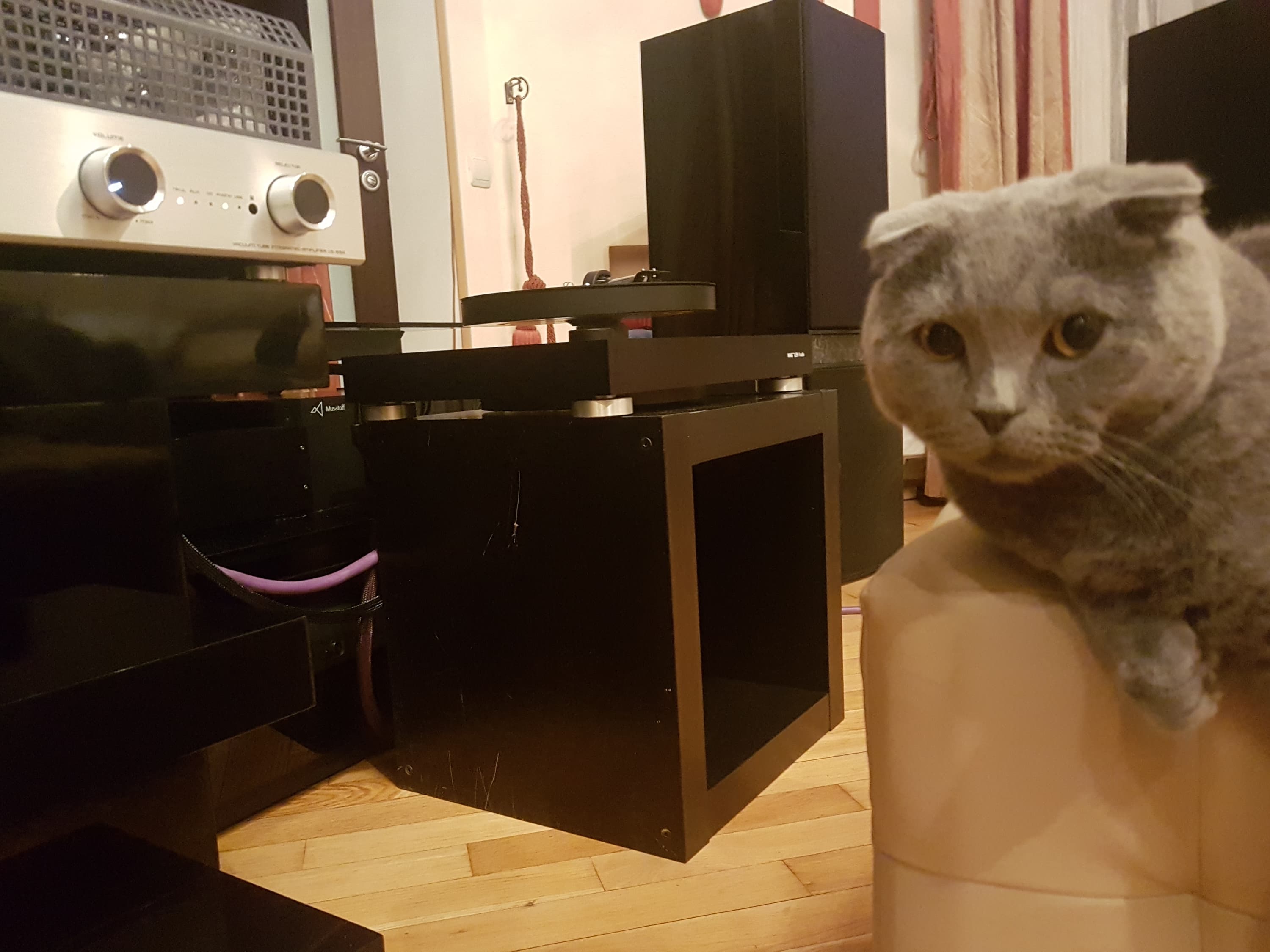Следует отметить, что суммарно 8 сторон виниловых пластинок в разных вариантах подключений и режимов были внимательно прослушаны моим котом, и он не покинул помещение, как это иногда бывало при прослушивании музыки с цифровых источников.
