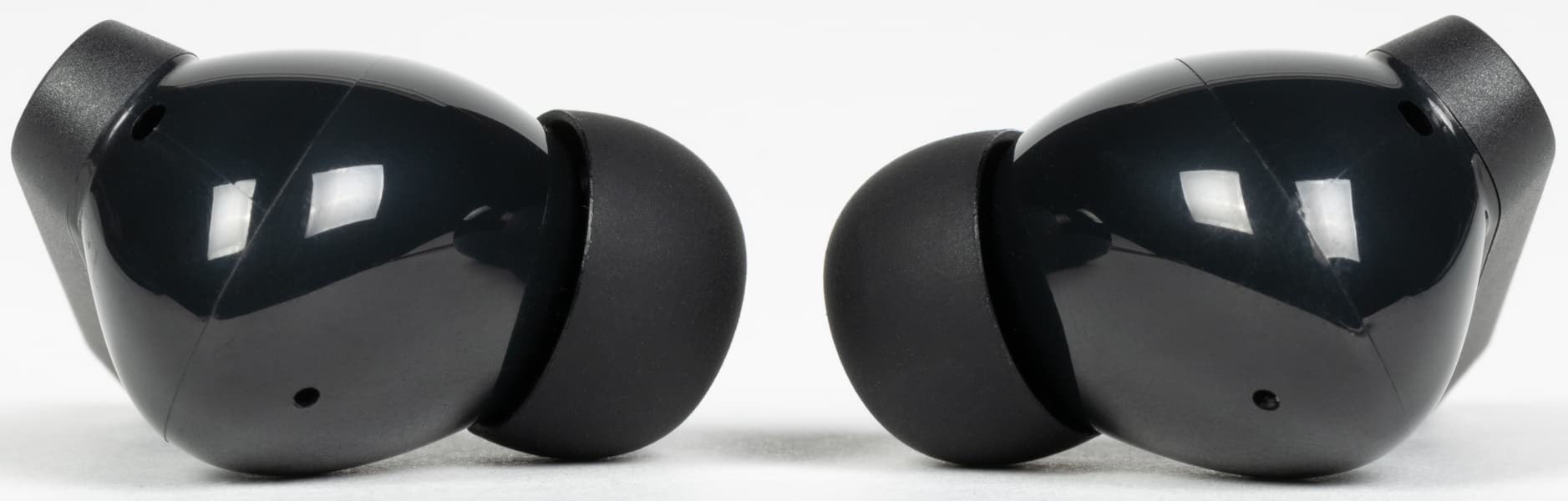 Отверстия микрофонов для голосовой связи смещены на переднюю сторону ножек, что потенциально может защитить их от «задувания» в ветреную погоду и при быстром перемещении пользователя — во время пробежки, например.