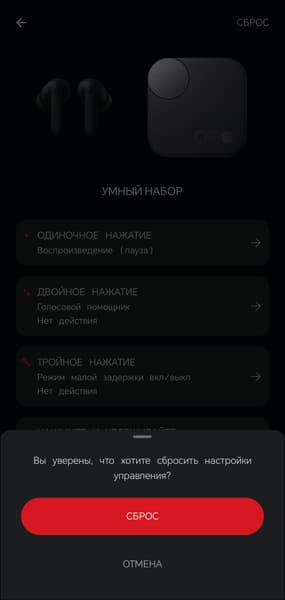 Система умеет различать касания правого и левого наушников, одинарное заблокировано во избежание фантомных срабатываний. При этом всего типов касания распознаётся аж четыре штуки: двойное, тройное, одинарное с удержанием и двойное с удержанием. На последнее можно «повесить» регулировку громкости, и хотя это явно не самый удобный вариант, как альтернатива колесику на всякий случай сгодится.