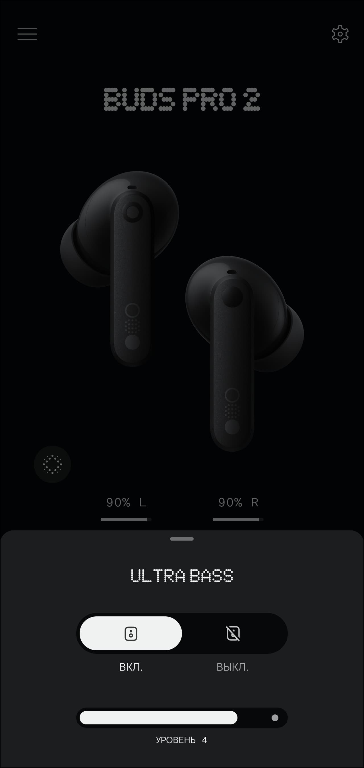 Небольшой подарочек для бассхэдов: режим Ultra Bass с пятью уровнями добавления акцента на низких частотах. Штука приятная и даже полезная, но мы бы всё равно предпочли полноценный эквалайзер разрозненным настройкам и «бустерам» баса.