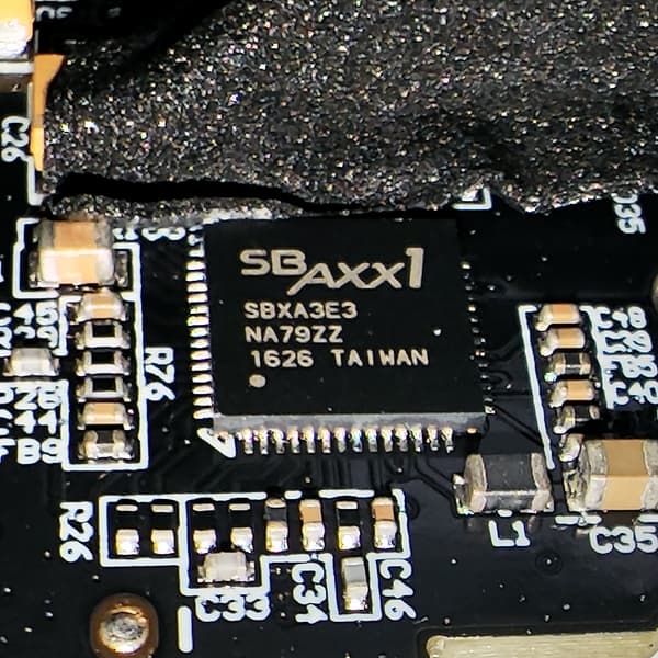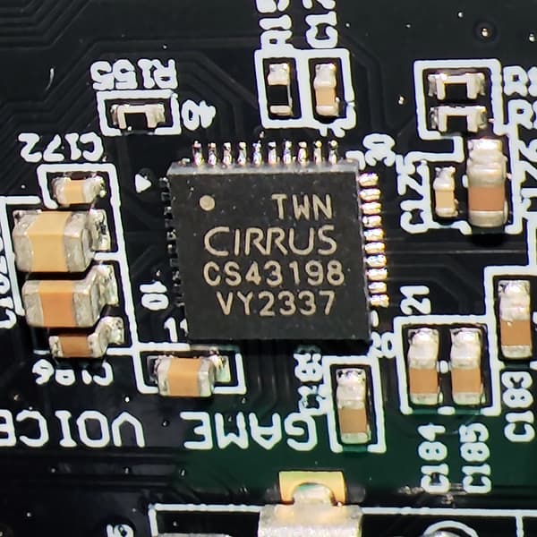В качества ЦАПа вместо Cirrus Logic CS43131, который был установлен в Creative Sound BlasterX G6, выступает несколько более свежий, но мало отличающийся по характеристикам CS43198. За обработку звука отвечает DSP процессор SBAxx1. В качестве АЦП вновь выбран Cirrus Logic CS5361.