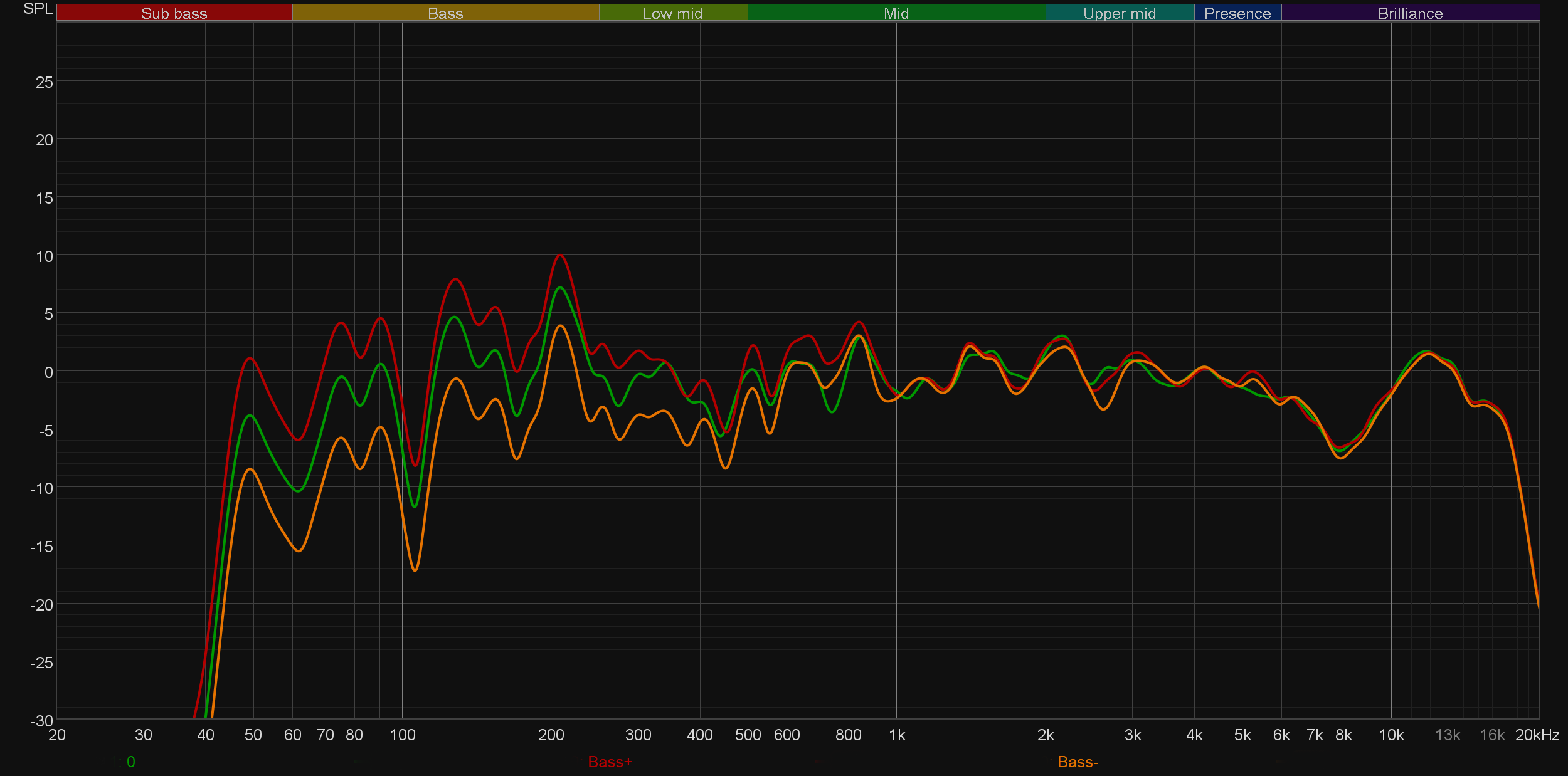 Регулятор баса работает сходным образом, но нужно отметить, что он слегка воздействует и на нижнюю часть середины, что позволяет не «потерять» ее при добавлении акцентов на НЧ-регистр.