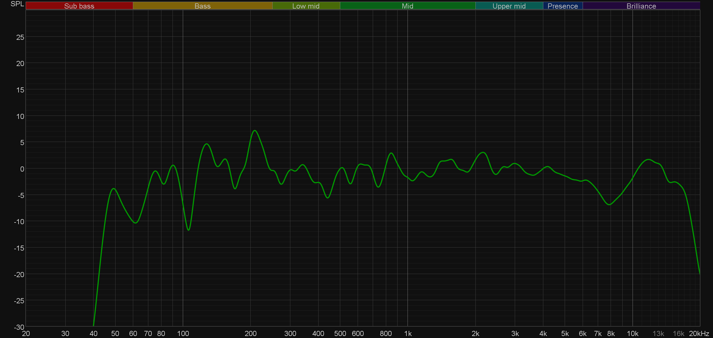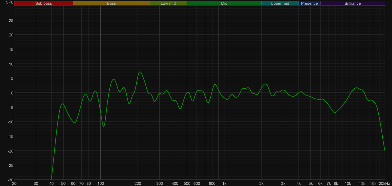 Обращаем внимание читателей, что все графики здесь и ниже приводятся исключительно как иллюстрации. Результаты измерений могут существенно меняться в зависимости от положения микрофона, используемых компонентов звукового тракта, параметров комнаты для прослушивания и так далее.