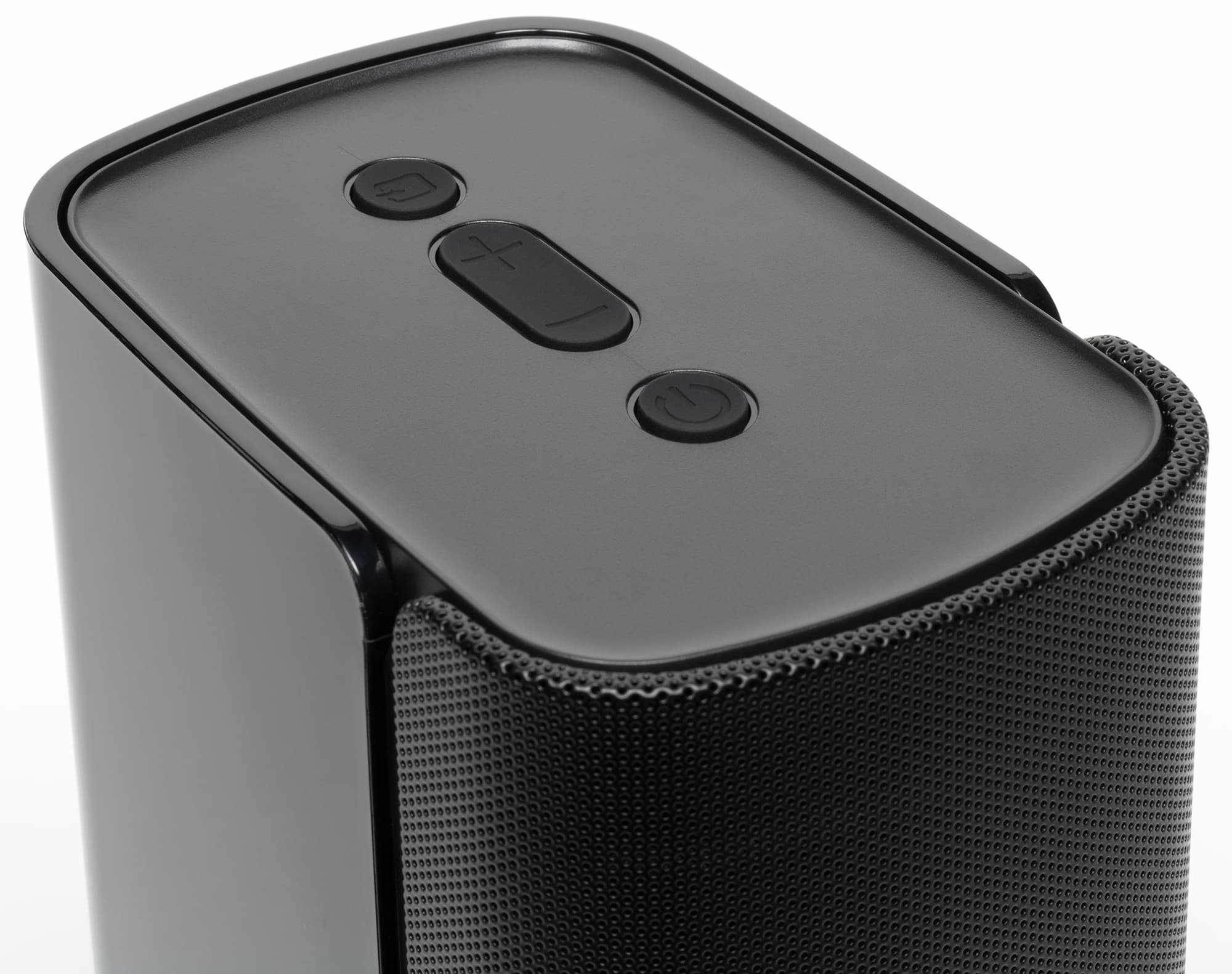 Качество сборки на высоте — никаких лишних зазоров, скрипов, люфтов и прочего. Пластик боковых панелей глянцевый — выглядит эффектно, но следы от прикосновений на нем появляются крайне легко. К счастью, и удаляются они тоже без проблем, а постоянно трогать колонки никакой необходимости нет.