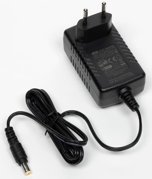 Адаптер переменного тока выдает 18 В 2 A, длина кабеля для подключения к активной колонке — 1,5 метра.