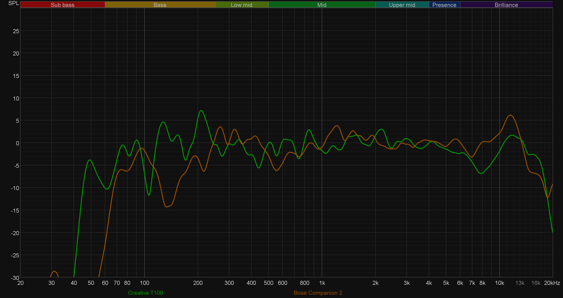 Ну и, конечно, нельзя было не сравнить Creative T100 с героями нашего прошлого тестирования. В сравнении с Bose Companion 2 Series III они однозначно выигрывают как по возможностям воспроизведения баса, так и по «ровности» середины.