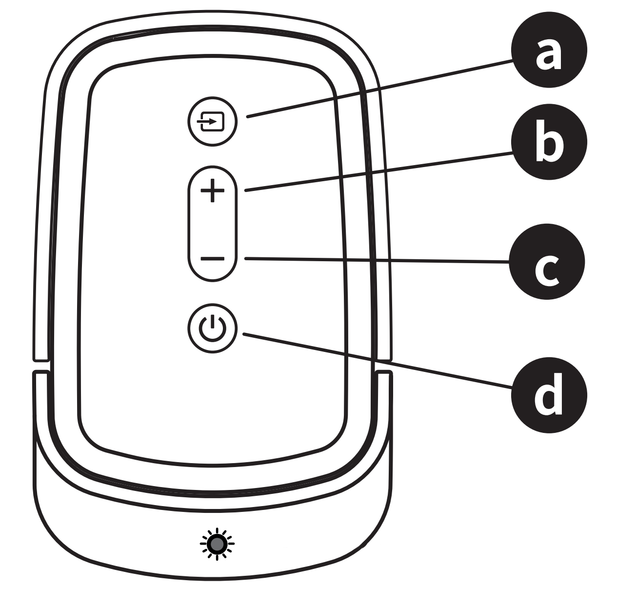 - b) Переключение между режимами входа (Bluetooth, MP3, Aux-In, Optical)
