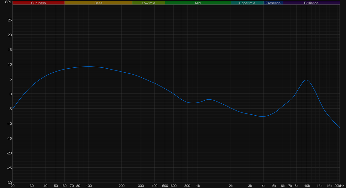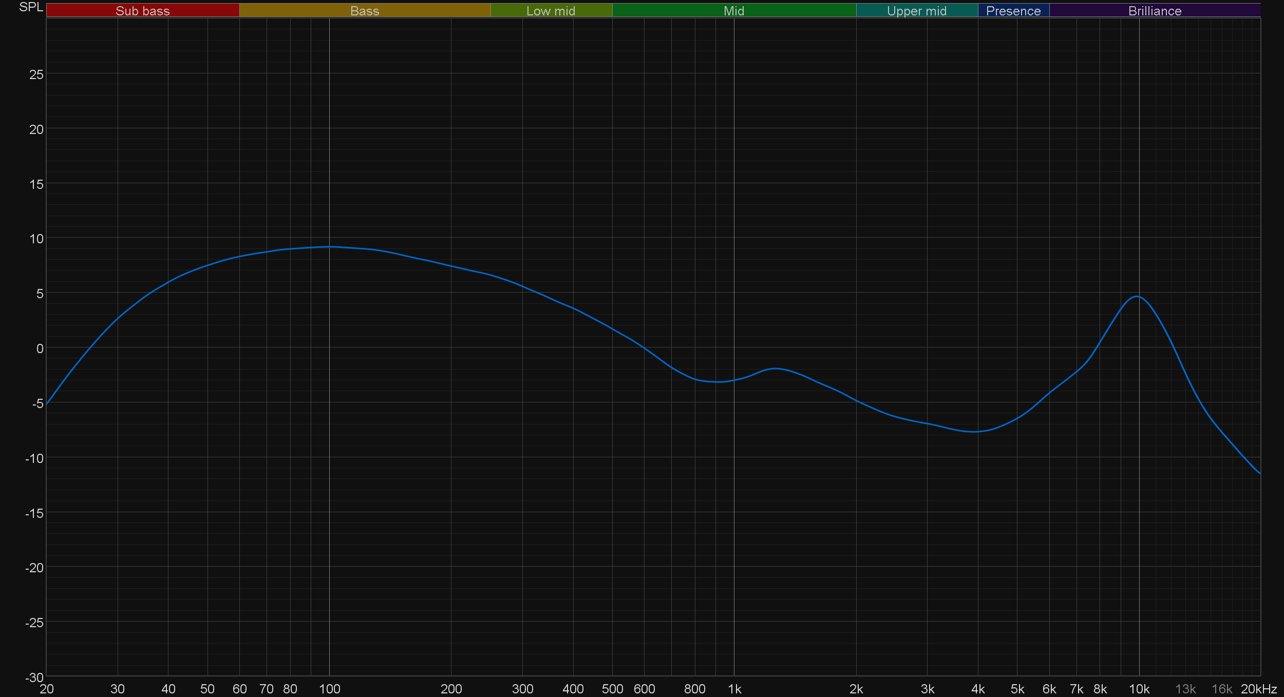 Высокочастотный диапазон неожиданно четкий и легко читаемый, что делает общее впечатление от прослушивания гарнитуры вполне приятным и позитивным. Его яркость не приводит к появлению проблем с «цыканием», но при этом изящно оттеняет агрессивный бас, придавая наушникам свой характер. Который понравится далеко не всем, но явно найдет поклонников. Посмотрим на график АЧХ, который прекрасно иллюстрирует все сказанное выше.