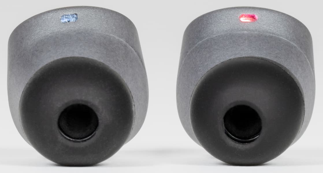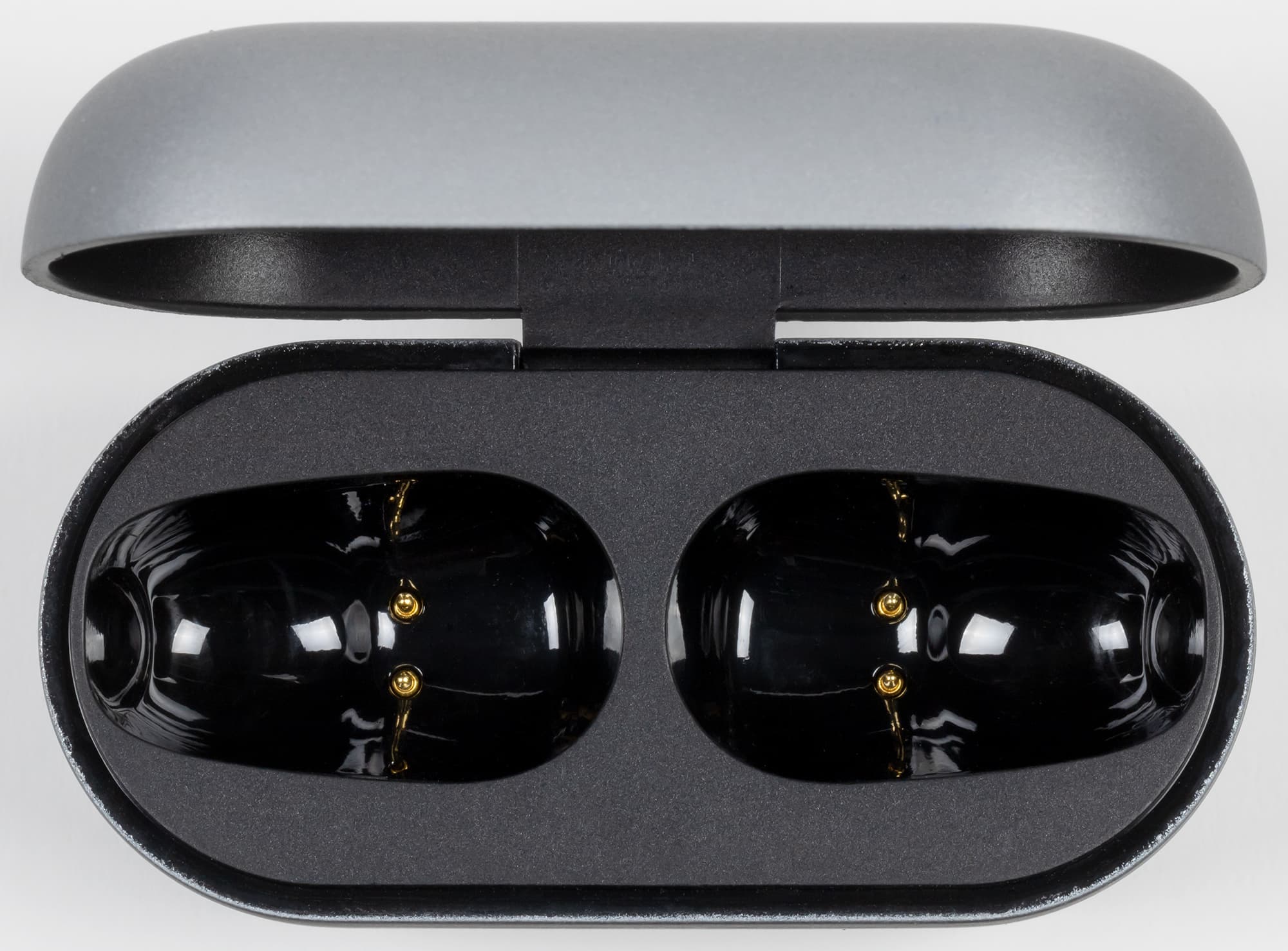 Сверху нет ничего особенно выдающегося, но вот здесь надо отметить одну очень и очень интересную особенность конструкции: оба наушника совершенно одинаковые, любой из них можно поместить в любой из слотов футляра. Помочь сориентироваться должны обозначения «право»/«лево» (правда, на нашей кастомной модели они отсутствовали).