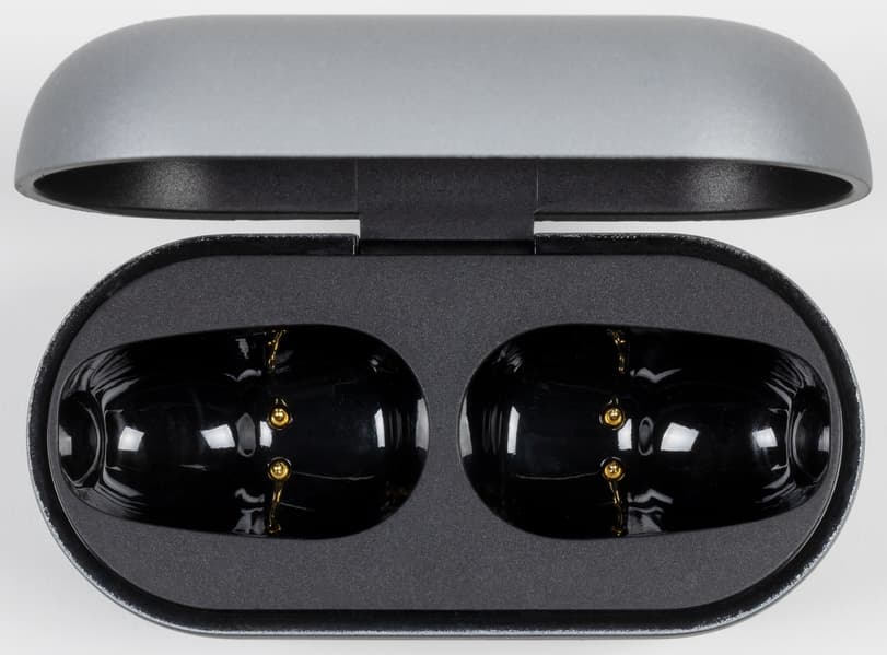 Наушники на своем месте крепко удерживаются магнитами, извлечение при этом не доставляет неудобств — достаточно слегка потянуть их на себя. Никаких посторонних звуков при ходьбе кейс с помещенными в него наушниками не издает, даже если специально потрясти его возле уха — все равно тишина.