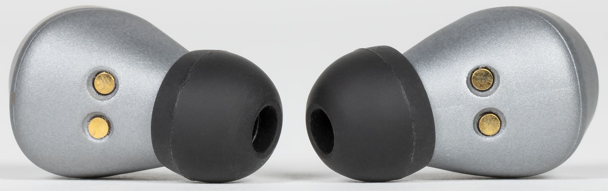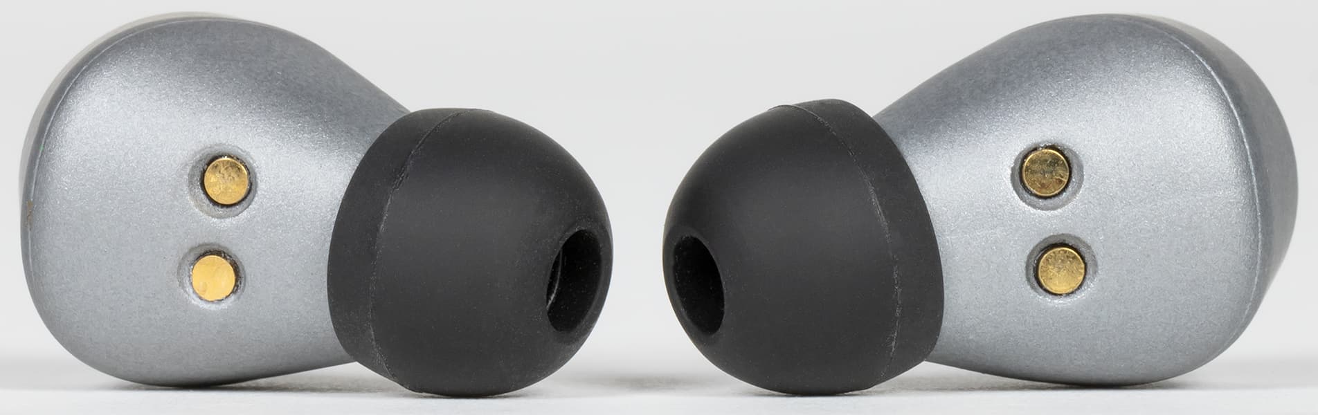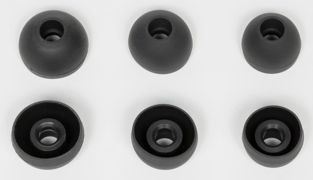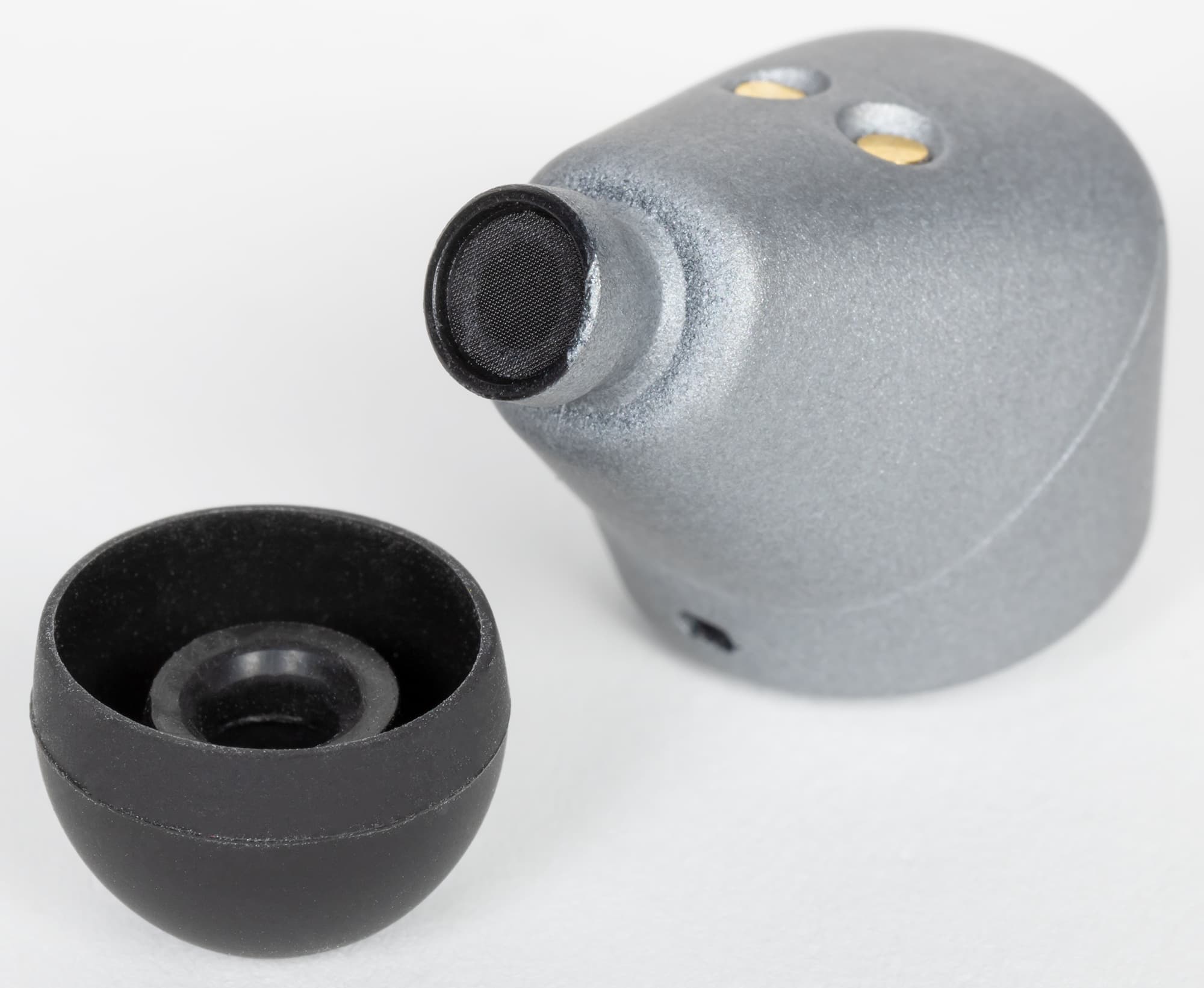 Отверстие звуковода прикрыто сеткой. Она чуть утоплена внутрь, но больших проблем с очисткой это не вызывает. Силиконовые насадки надежно крепятся с помощью бороздки на «носике» и не слетают при использовании наушников.