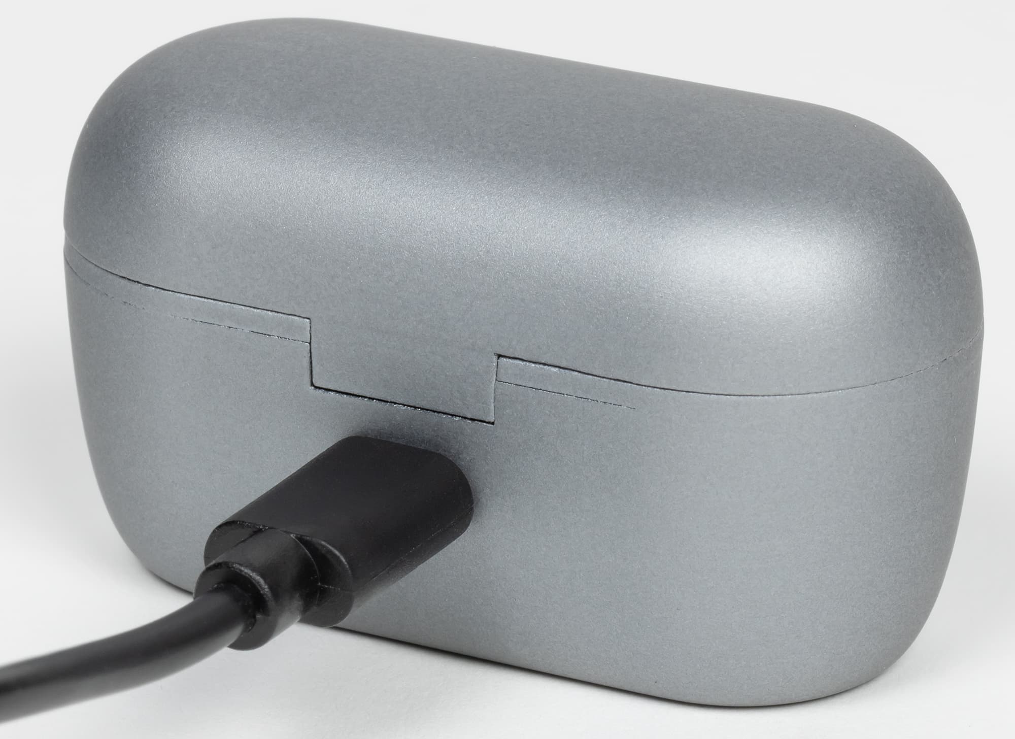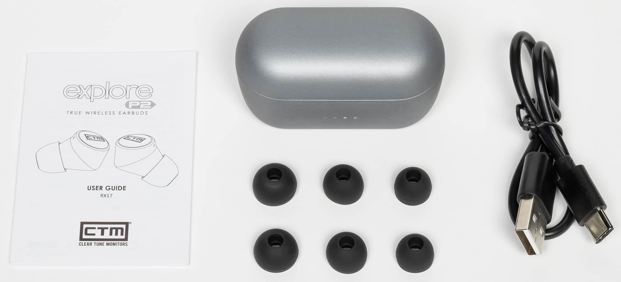В комплект поставки входят сами наушники в зарядном кейсе, документация, кабель USB — USB Type C длиной 25 см, три пары сменных силиконовых насадок (еще одни установлены по умолчанию).