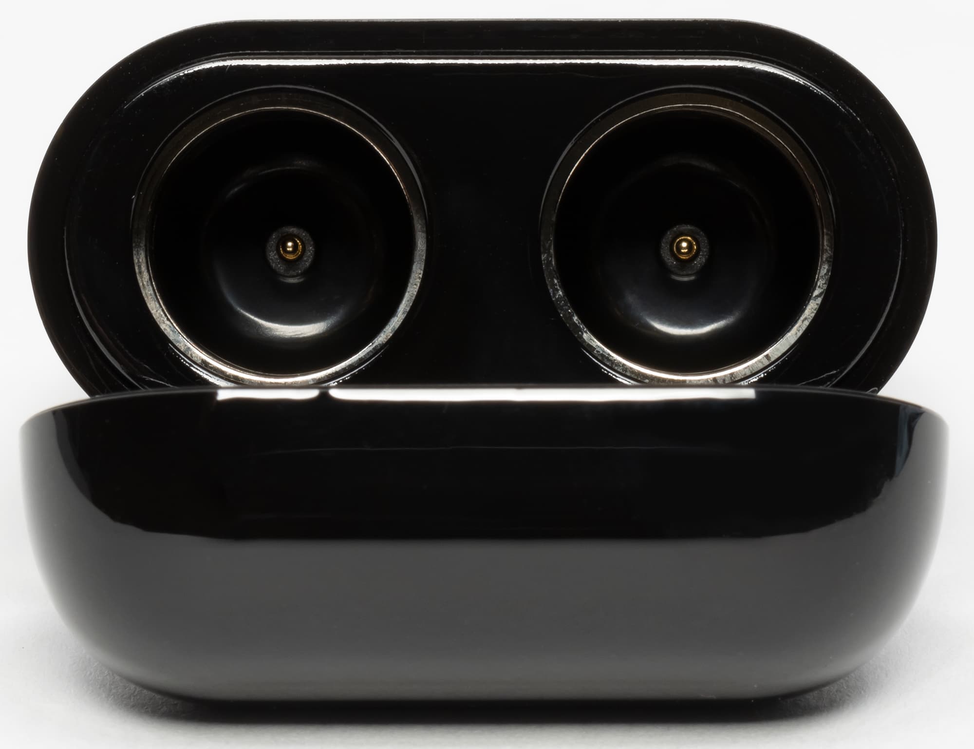 Внутри слотов для наушников расположены контакты для зарядки. Центральный соприкасается с металлической решеткой звуковода. А расположенный вокруг слота — с корпусом наушников.