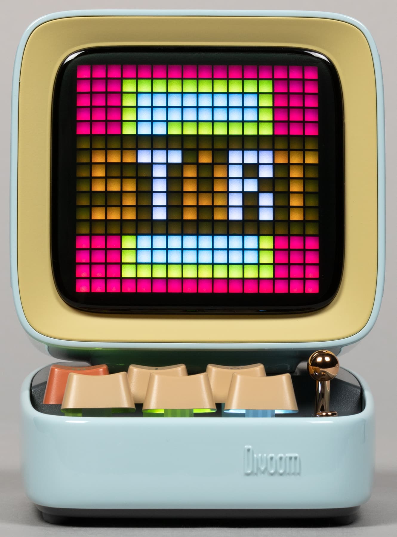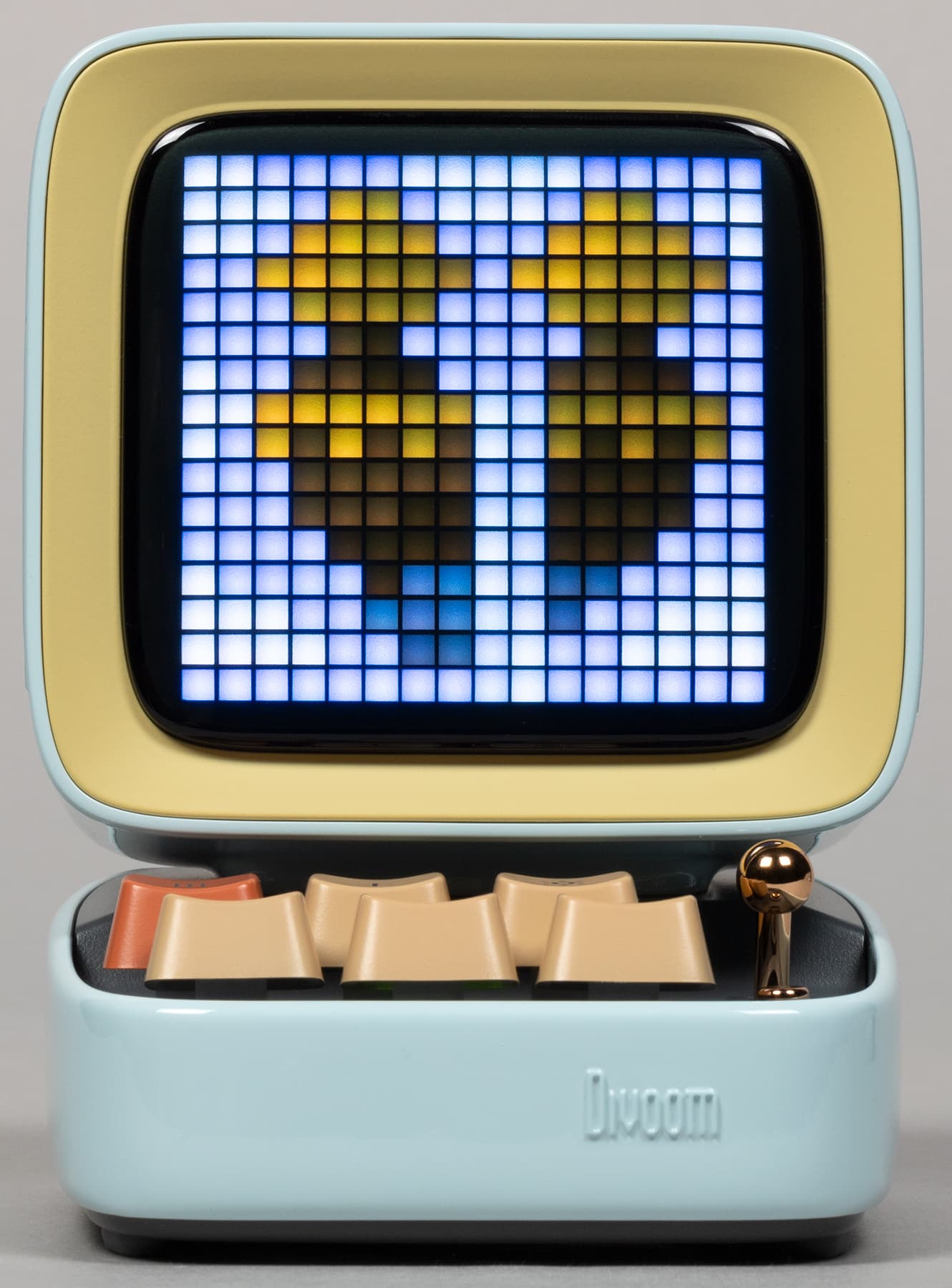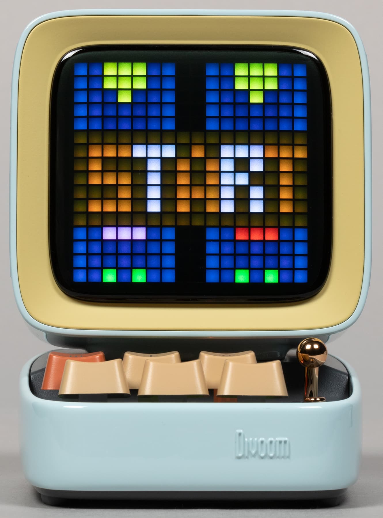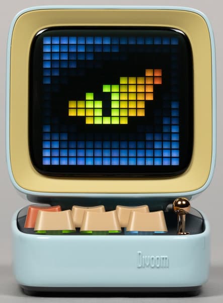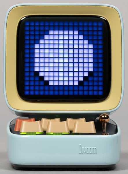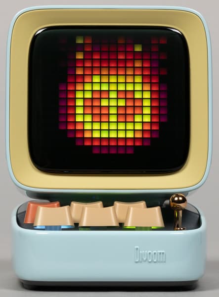 Компания Divoom выпускает кучу всяческих штуковин, оборудованных пиксельными экранами и, соответственно, способных воспроизводить картинки и анимацию в стиле Pixel Art — от дисплеев до рюкзаков и сумок. Ну или вот колонки, например. Да-да, у нашей колонки есть экран, который в данном случае чуть ли не важнее, чем встроенные динамики — основная-то «фишка» именно в нем. А еще в очень оригинальном дизайне.
