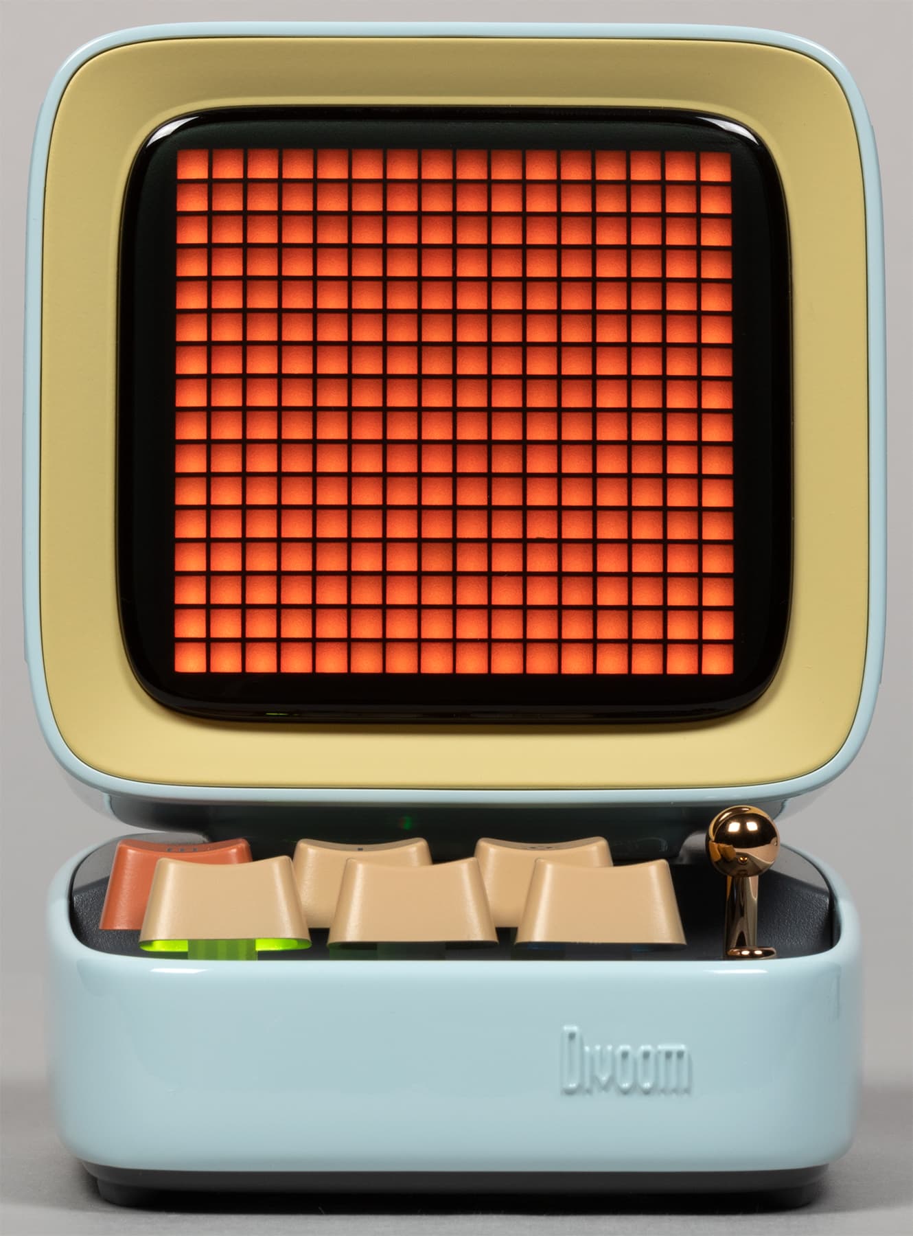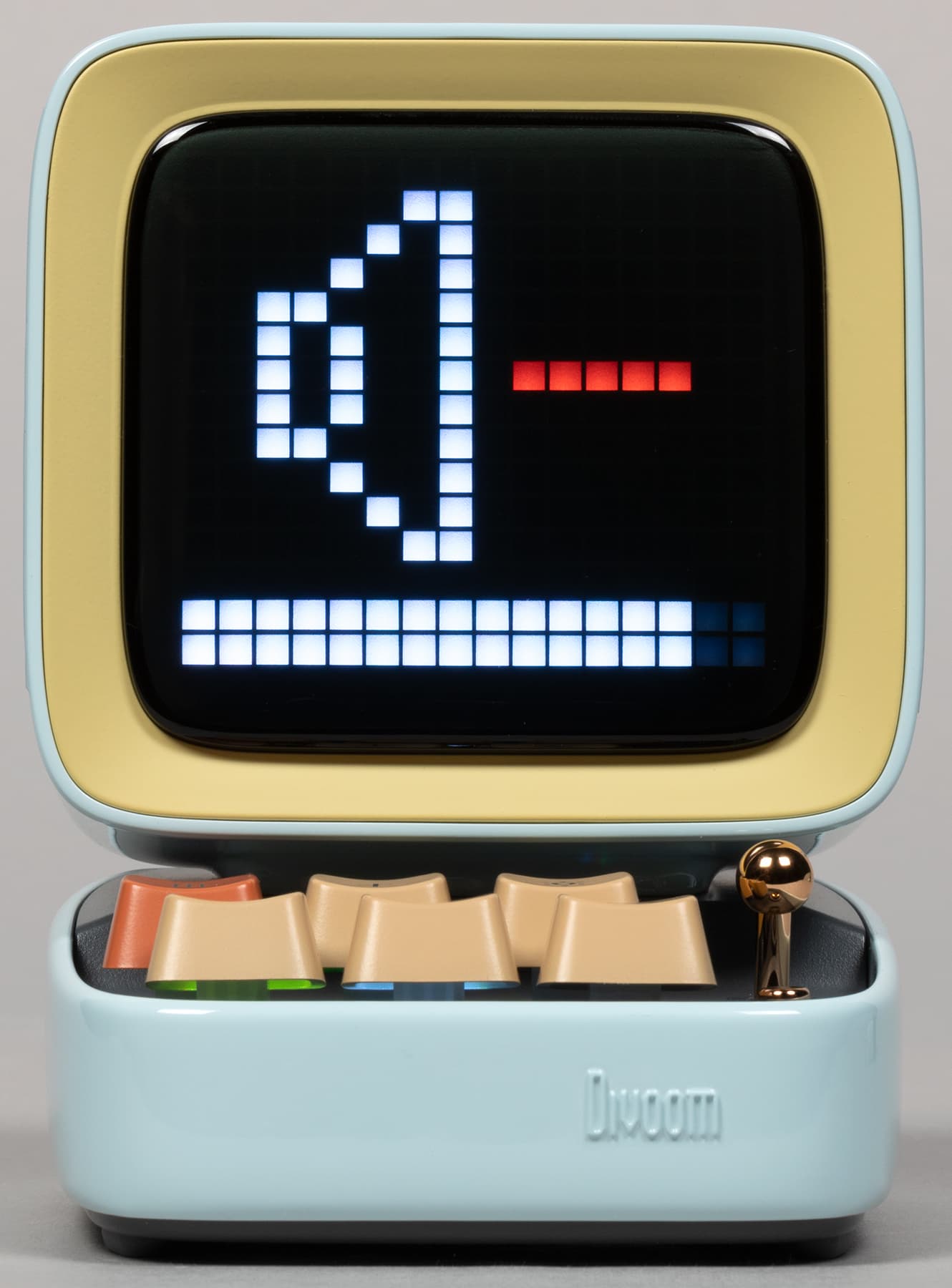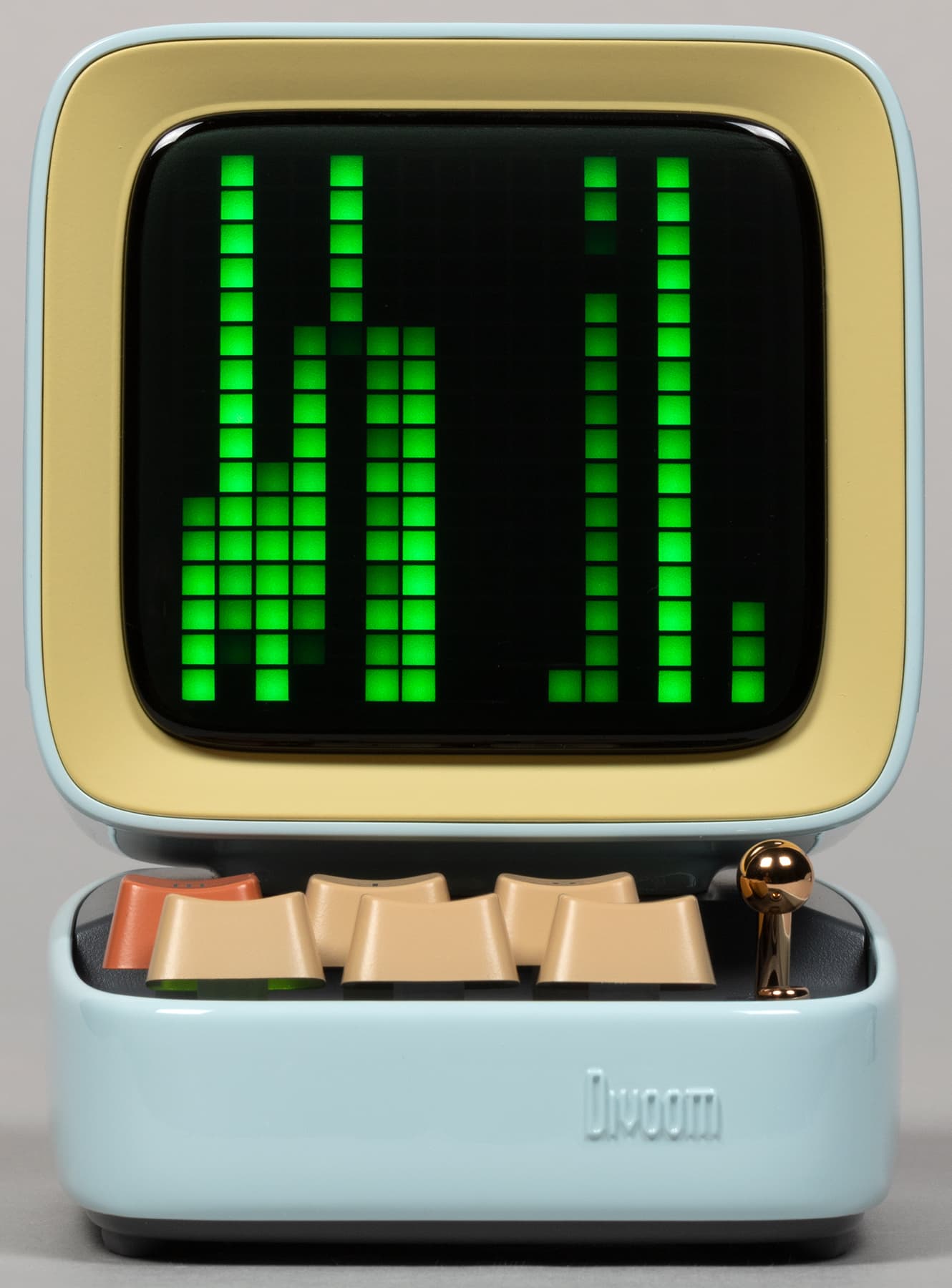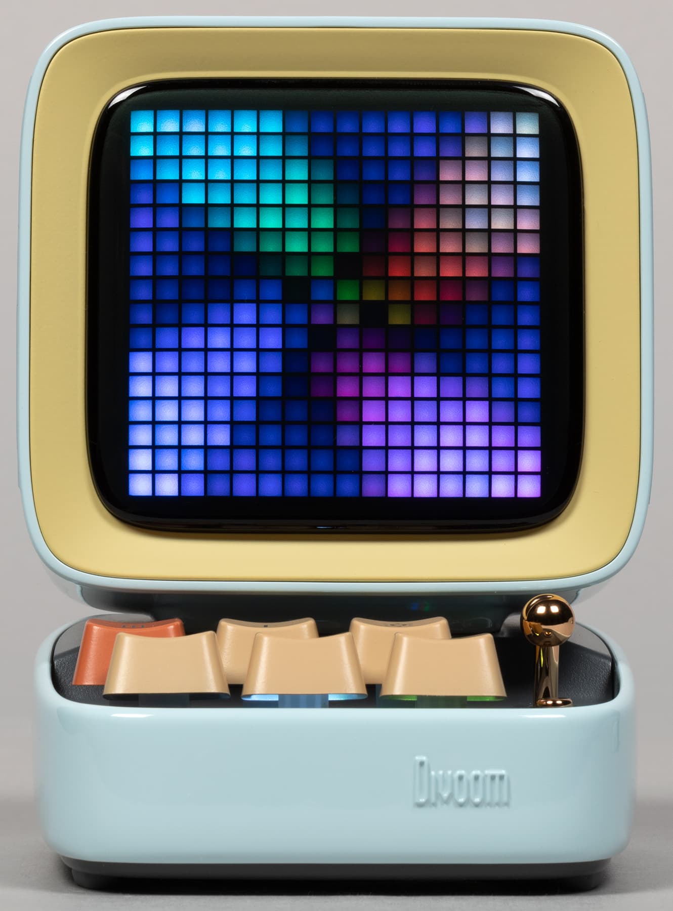 Компания Divoom выпускает кучу всяческих штуковин, оборудованных пиксельными экранами и, соответственно, способных воспроизводить картинки и анимацию в стиле Pixel Art — от дисплеев до рюкзаков и сумок. Ну или вот колонки, например. Да-да, у нашей колонки есть экран, который в данном случае чуть ли не важнее, чем встроенные динамики — основная-то «фишка» именно в нем. А еще в очень оригинальном дизайне.