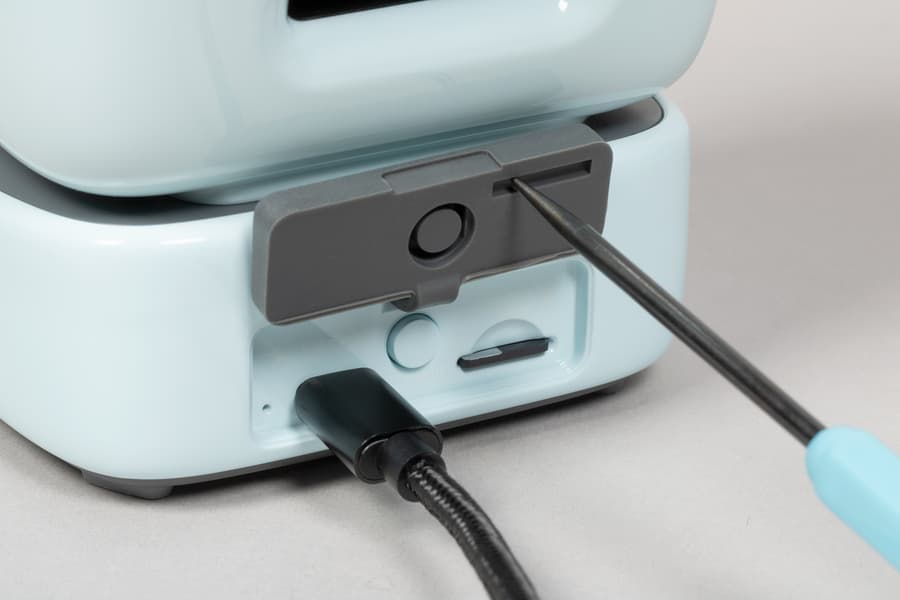 Перед первым использованием устройство неплохо бы зарядить, потому отгибаем силиконовую накладку на задней панели, а под ней обнаруживаем порт USB Type C для зарядки. По центру размещена кнопка включения, нажимать которую можно и не убирая силиконовую накладку, а нажимая прямо на ее центр.