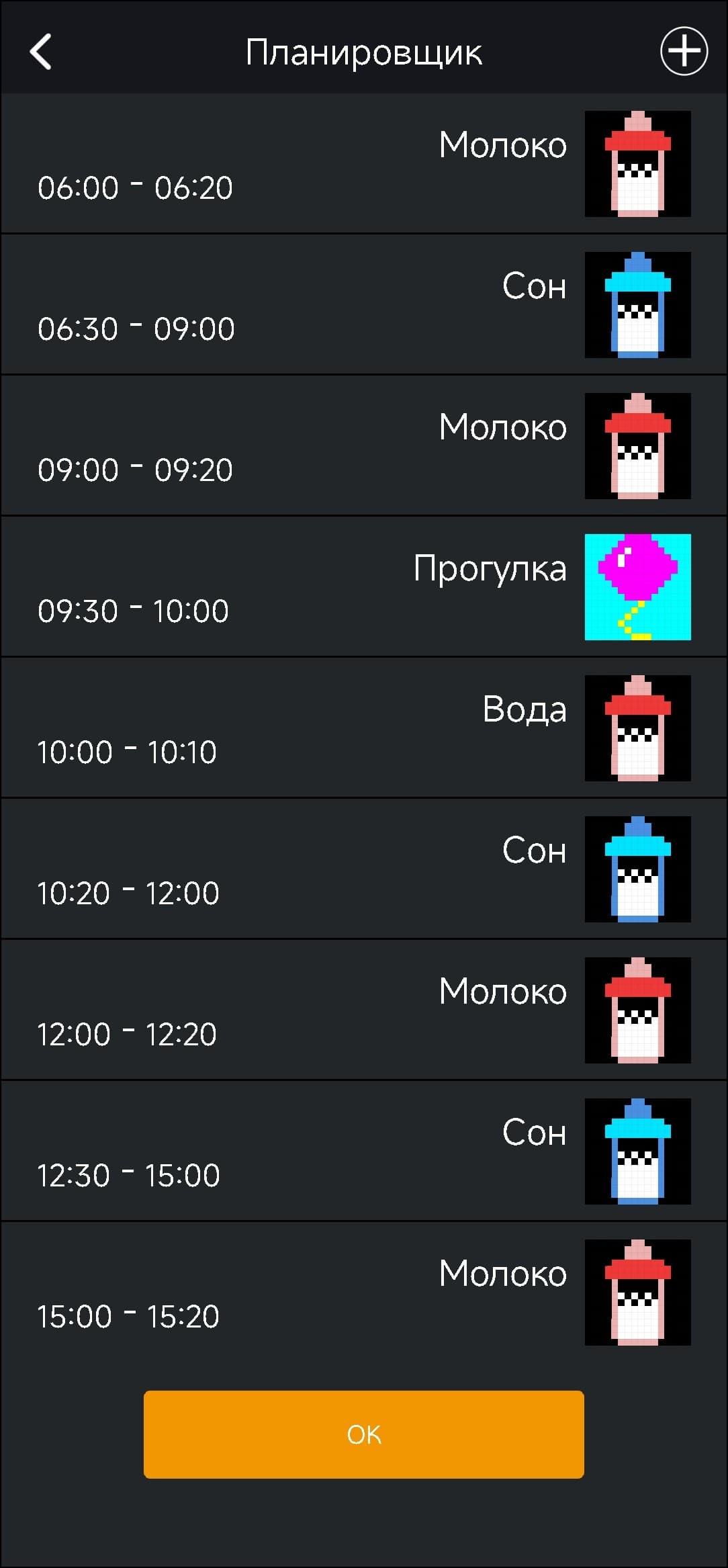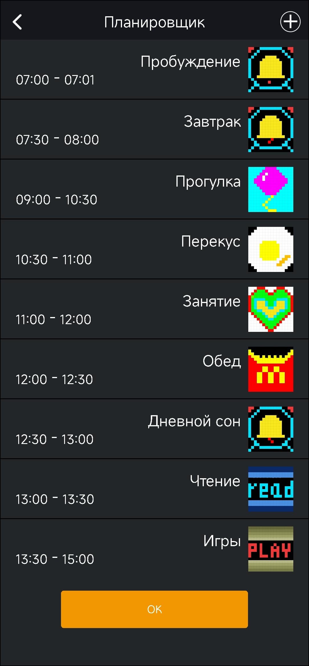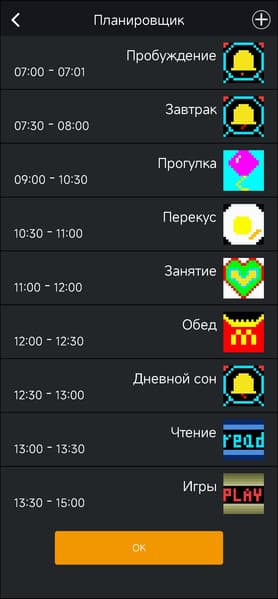 И еще немного про всякие полезности. Во-первых, есть планировщик. Как деловой, так и «детский» — можно распланировать график своего ребенка буквально по минутам.