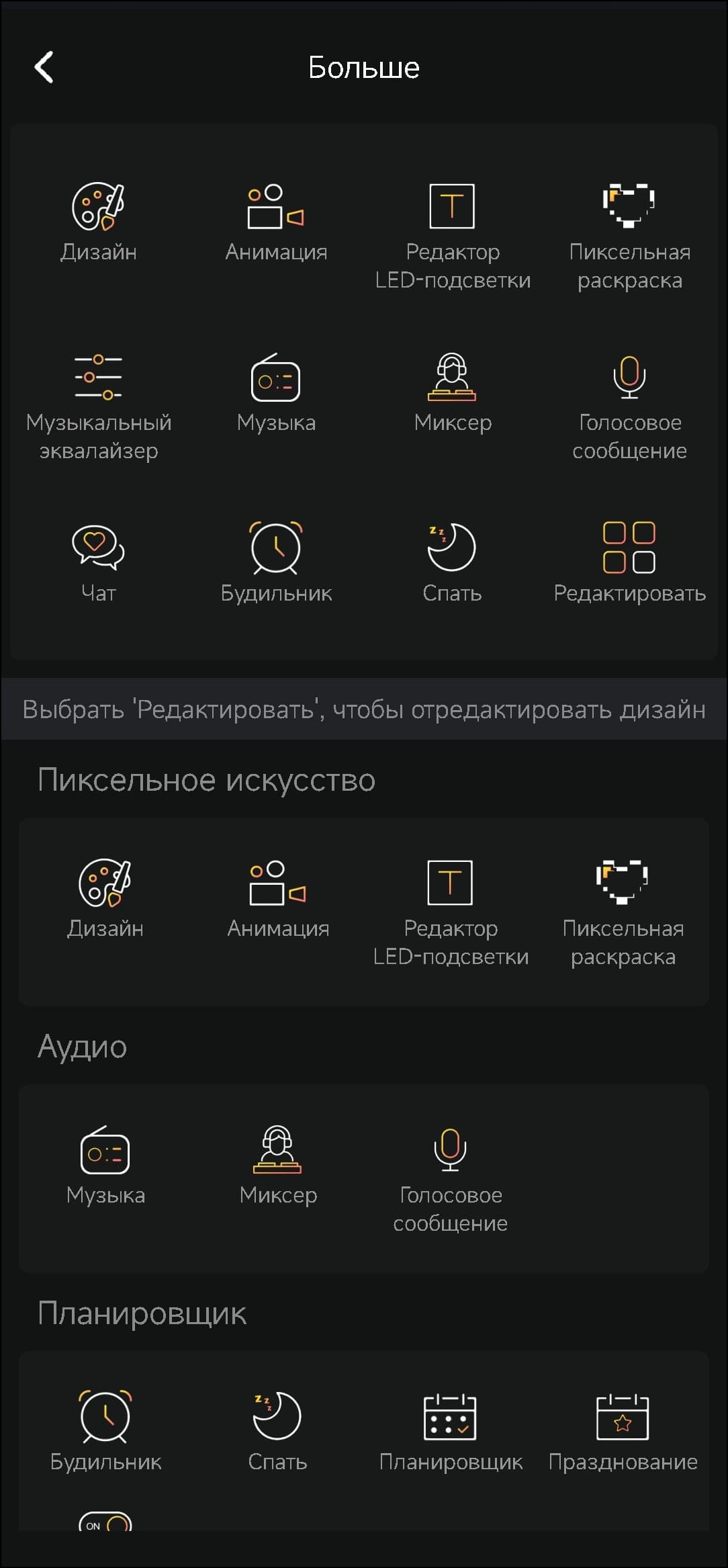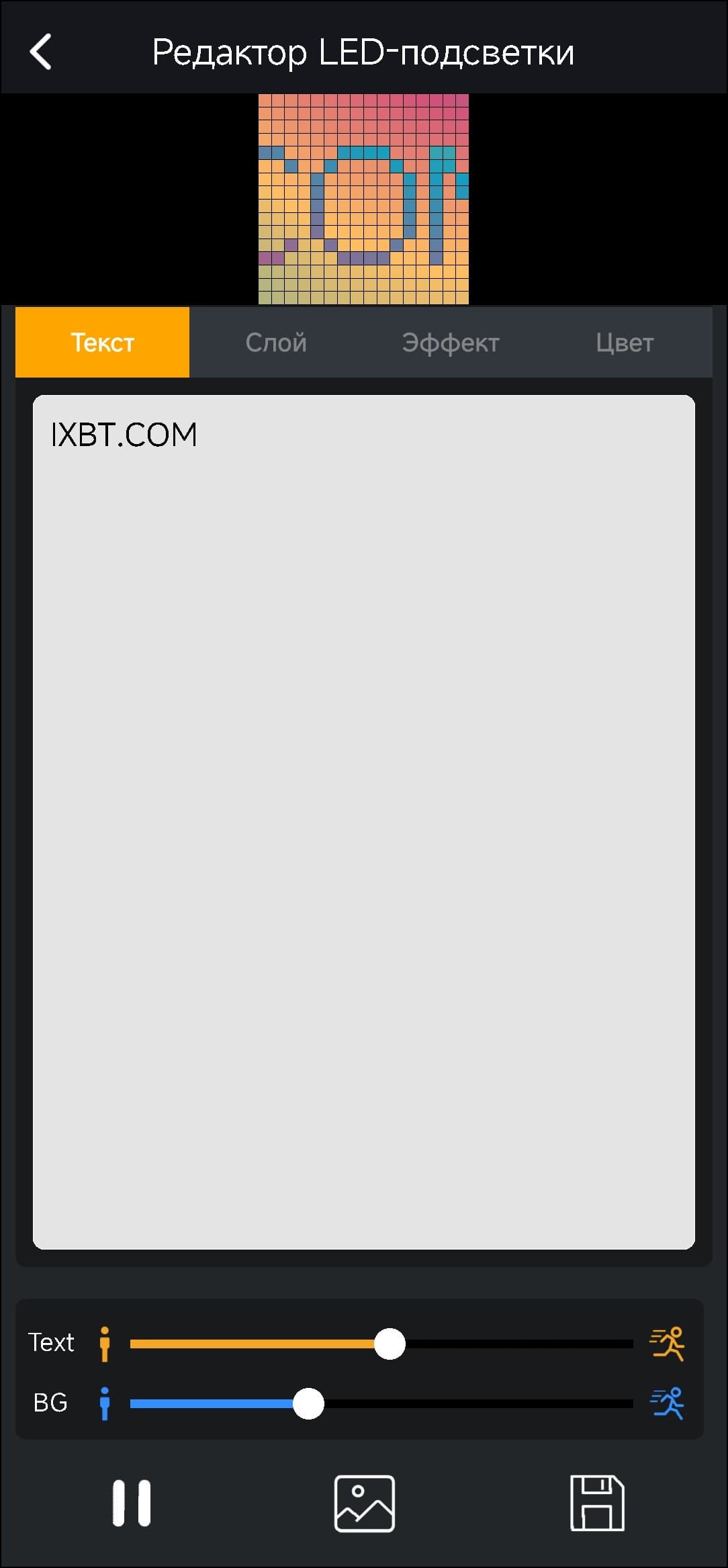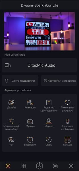 Ну а мы возвращаемся в приложение Divoom: pixel art editor и вновь удивляемся тому, сколько там всего интересного. В основном, как несложно догадаться по названию, ПО предлагает разные варианты работы с пиксельным экраном. Можно что-то нарисовать, написать, сделать анимацию — вариантов просто море, и чтобы попробовать все, потребуется не один час.