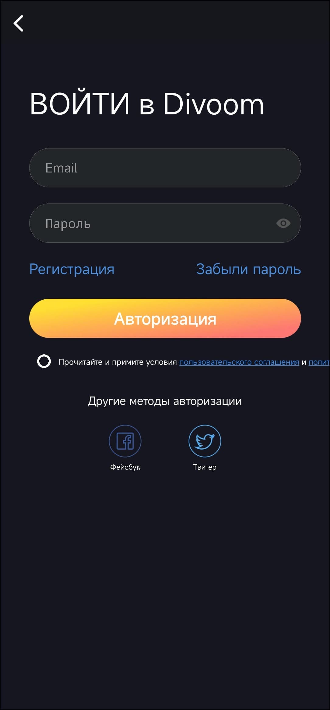 Вот про ПО под названием Divoom: pixel art editor мы сейчас и поговорим. Колонку можно использовать и без него, но не нужно — больше половины всего интересного доступно только с ним. Так что первым делом устанавливает программу, существующую в версиях под Android и iOS. Без авторизации пользоваться ею не получится — придется зарегистрироваться.
