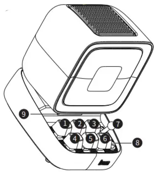 - Кнопка караоке: короткое нажатие — включение и выключение режима караоке, длинное нажатие — в режиме караоке со вставленной SD-картой начинается запись на SD-карту, не в режиме караоке со вставленной SD-картой начинается воспроизведение записи
