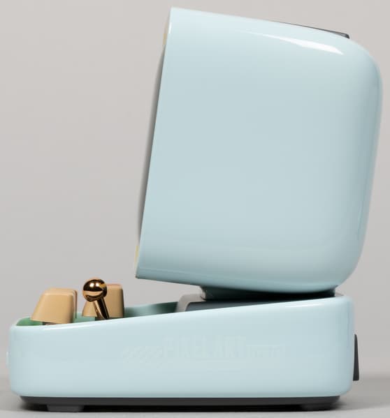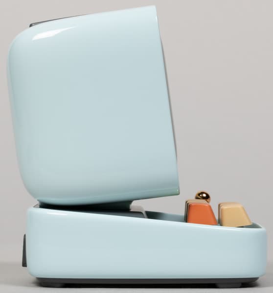 При взгляде сбоку видно, что монитор чуть наклонен вверх, а клавиатура — вниз, в общем, всё по уму. Декоративных элементов на боковых гранях нет, что прекрасно. Но желающие еще больше пиксель-арта могут наклеить на них наклейки из комплекта.