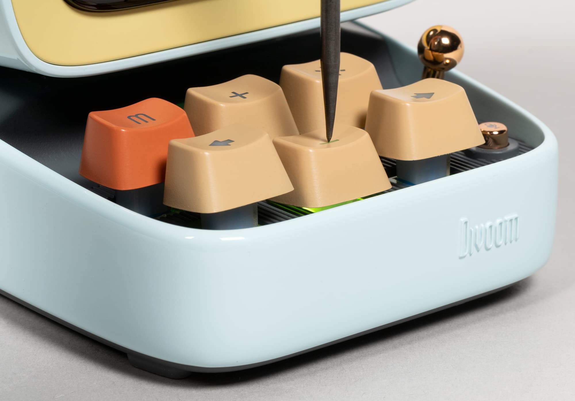 Для управления колонкой используется самая настоящая механическая клавиатура с синими свитчами, приятно кликающими при нажатии.