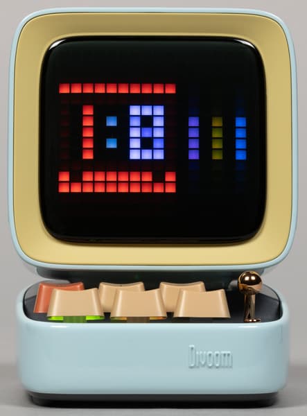 Оформлена DitooMic в виде ретро-компьютера с «пузатым» монитором и самой настоящей механической клавиатурой — удивительное дело, но смотреться это будет одинаково органично на столе увлеченного айтишника или юной принцессы лет этак пяти-шести. Ну и в качестве подарка Divoom DitooMic одинаково порадует как гиков, так и детей — тут ничего удивительного, с комиксами и фигурками супергероев ситуация аналогичная. А еще Divoom DitooMic может не только развлечь, но и принести немножко пользы — показать часы, поставить таймер, напомнить о событии или сообщении в мессенджерах... Но это мы уже забегаем далеко вперед, а мы еще даже технических характеристик не видели — с них и начнем.