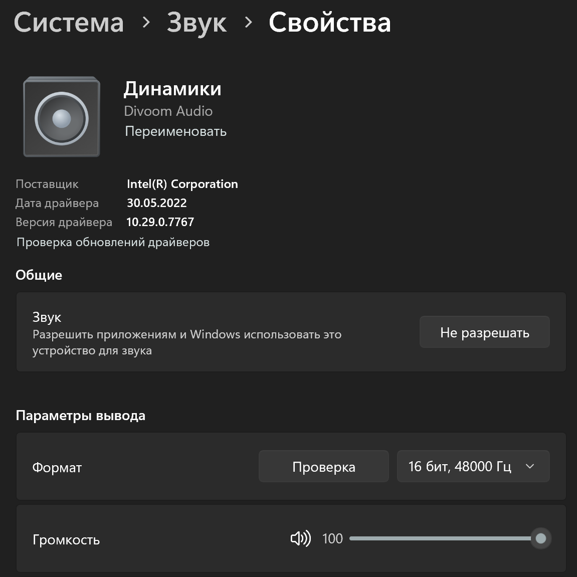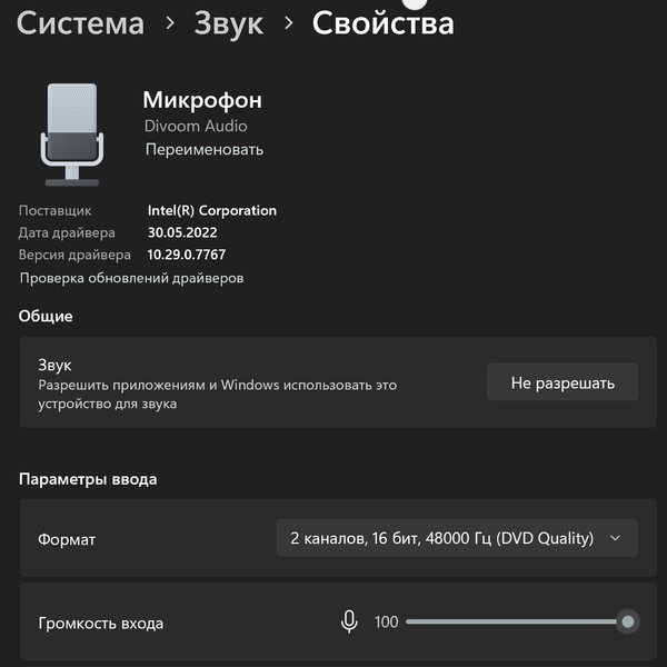 Также колонку можно подключить к ПК или другому устройству с помощью USB-кабеля, в том числе — идущего в комплекте. После подключения она автоматически определяется Windows как аудиоустройство с поддержкой единственного режима: 16 бит/48 кГц. При этом работает Divoom Songbird-SE и как акустика, и как микрофон — соответственно, позволяет не только слышать голос пользователя, но и записывать, а также выбирать в качестве источника звука во всяческих мессенджерах.
