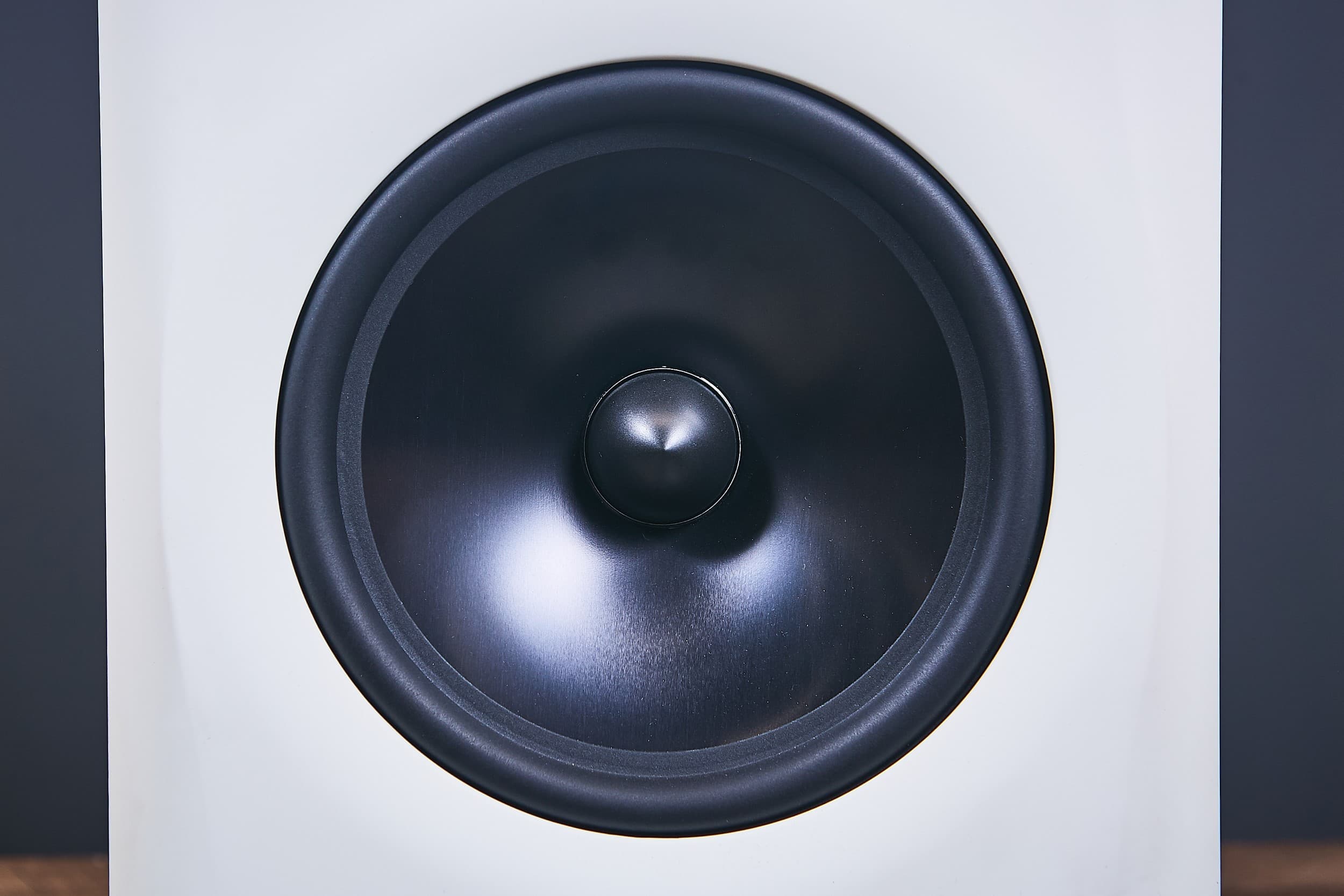 В нижней половине передней панели размещен мидбасовый динамик диаметром 200 мм с алюминиевым диффузором и «фазовыравнивающим» пылезащитным колпачком пулевидной формы.