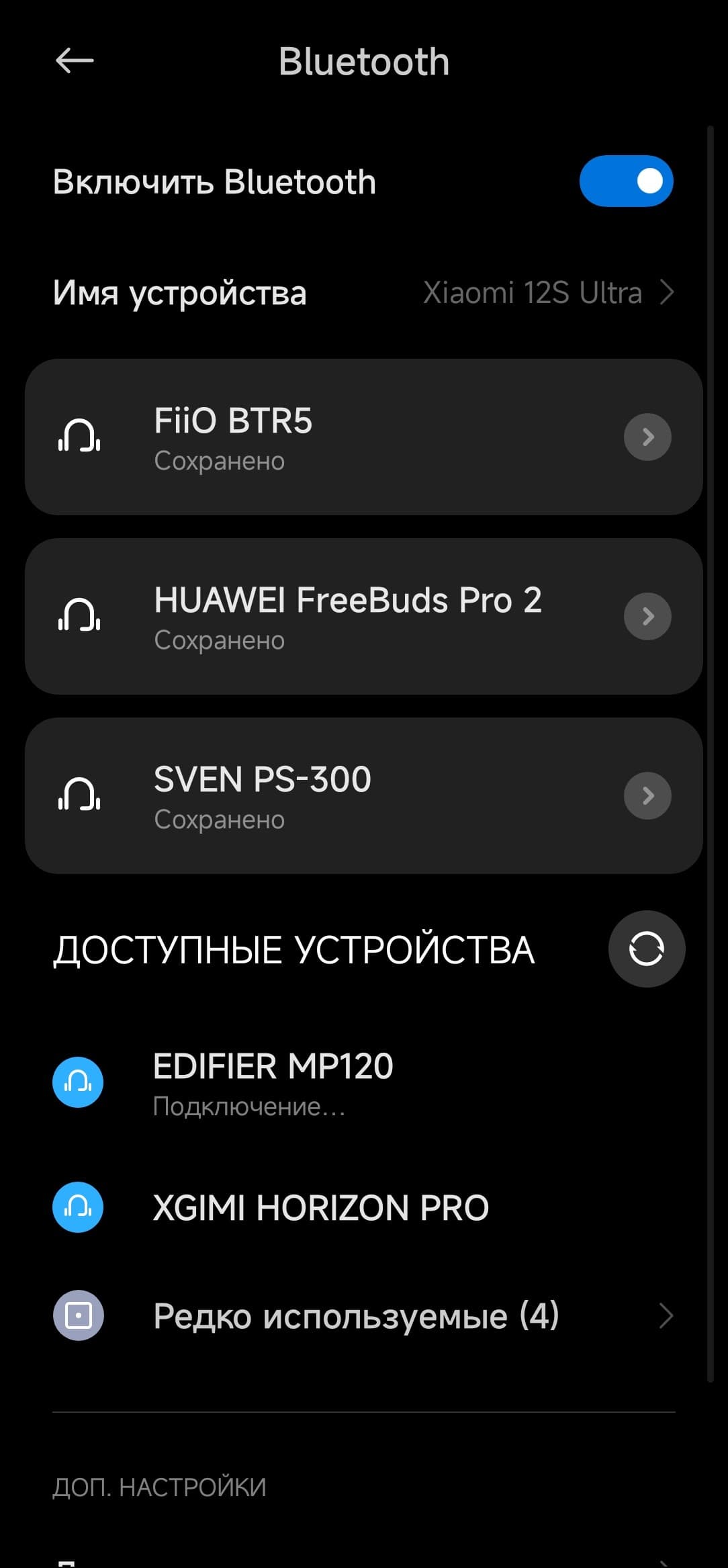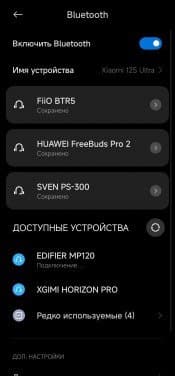 После активации Bluetooth колонка некоторое время пытается подключиться к уже «знакомым» гаджетам, если не выходит — запускает сопряжение. Ну а дальше все как всегда: находим ее в соответствующем меню и подключаем.
