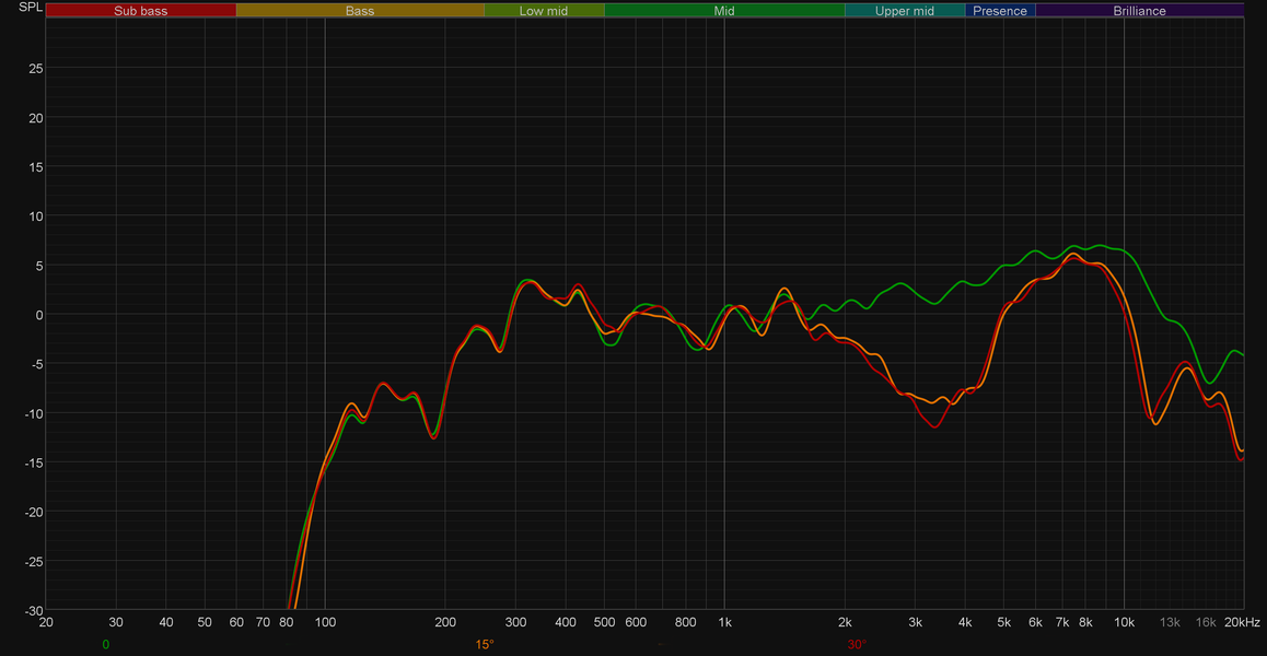 С размерами корпуса связана и далеко не самая впечатляющая горизонтальная дисперсия звука — уже при повороте передней панели на 15° относительно слушателя мы практически лишаемся верхней середины.