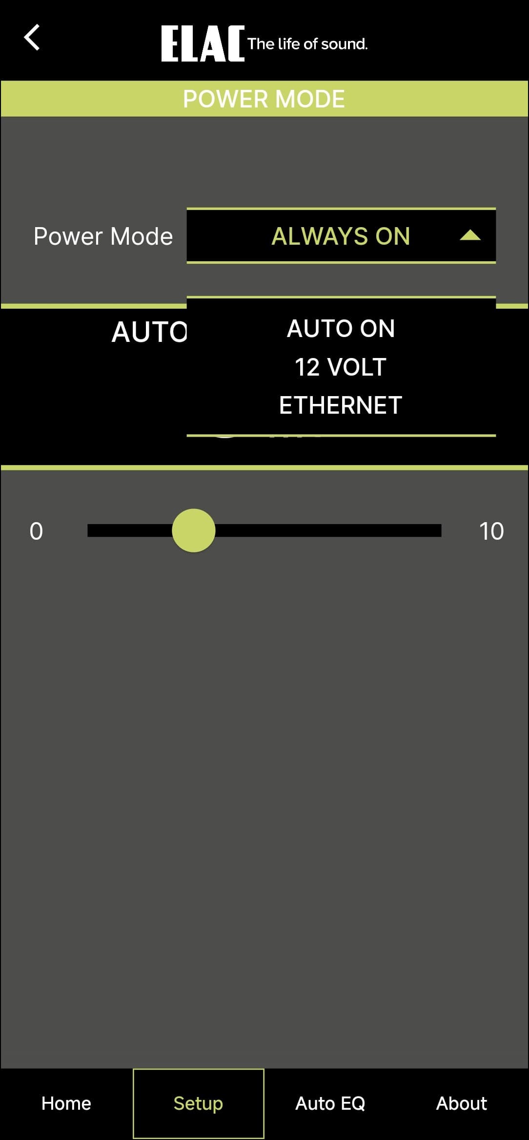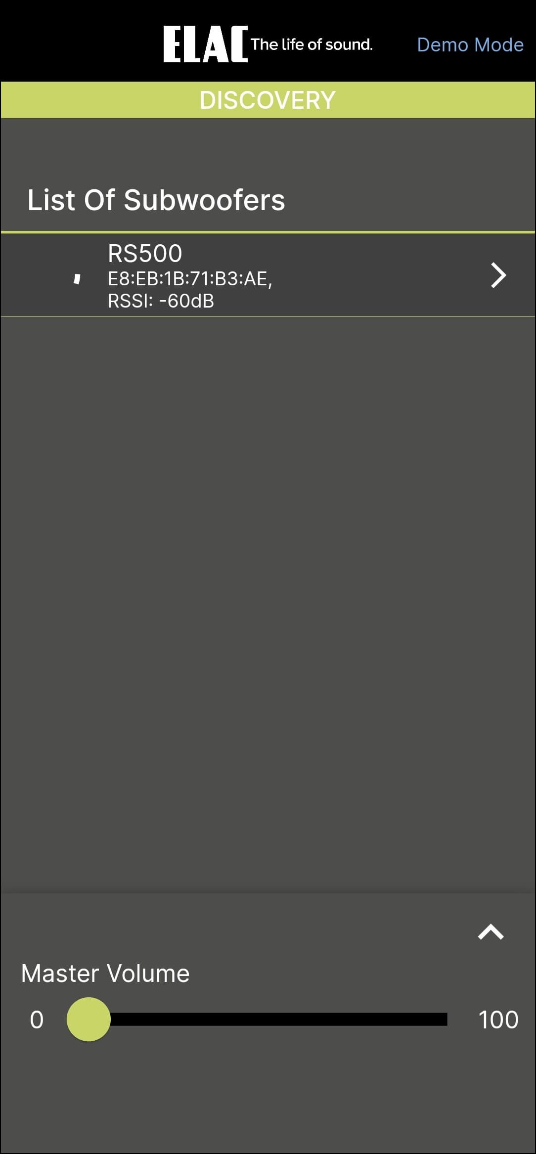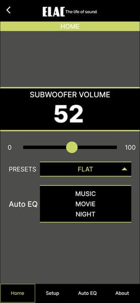 Настройка и управление Elac Varro Reference RS500 осуществляются через приложение Elac Sub Control — без него тут никуда. Доступно оно для гаджетов под управлением Android и iOS, мы тестировали андроид-версию.