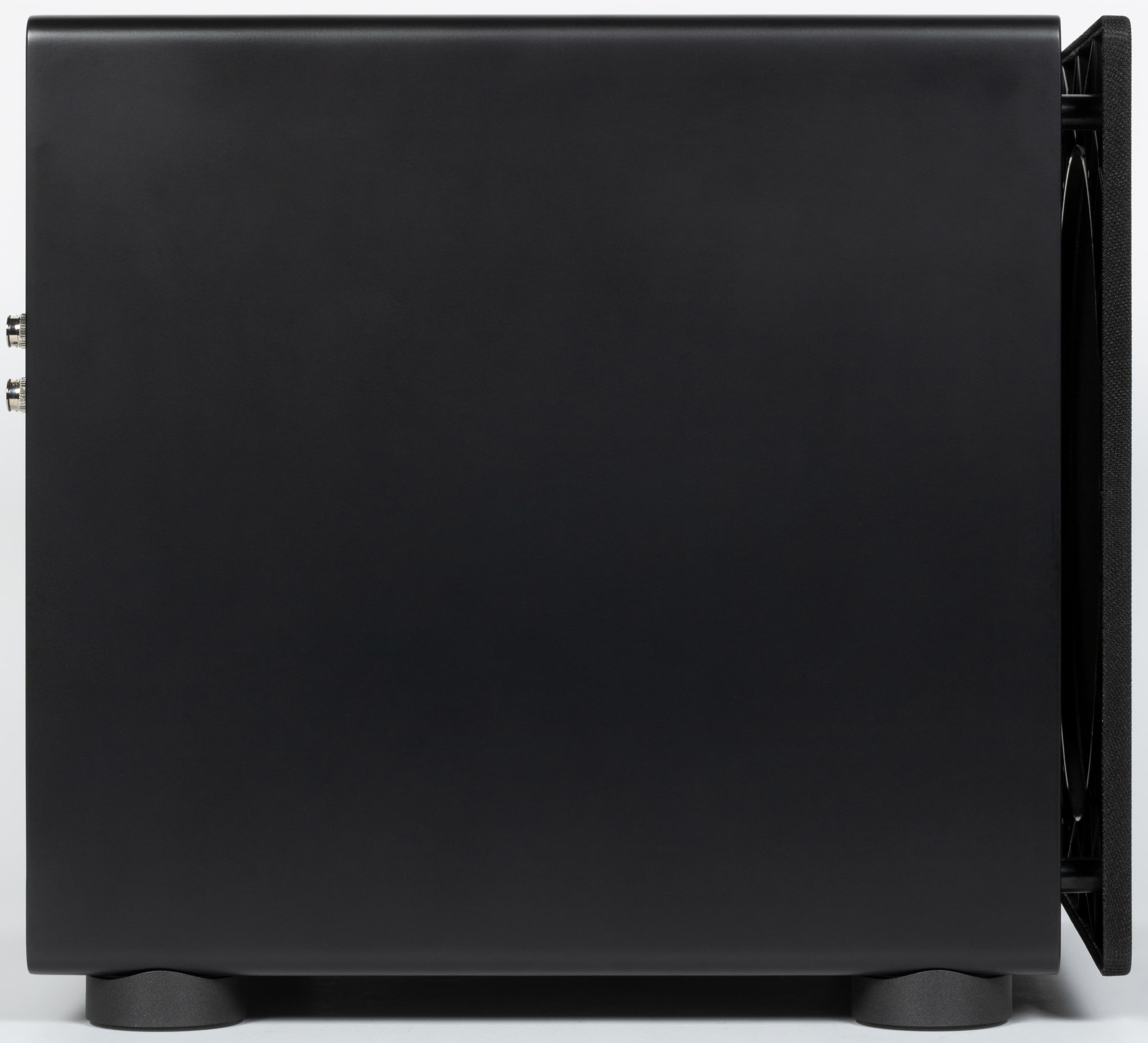 На боковых стенках ничего особо интересного — просто матовая поверхность. Которая, кстати, несмотря на свою матовость легко покрывается пятнами от прикосновений и в целом крайне неустойчива к загрязнениям. К счастью, постоянно трогать сабвуфер нет совершенно никакой необходимости, а пыль удаляется с него легко.