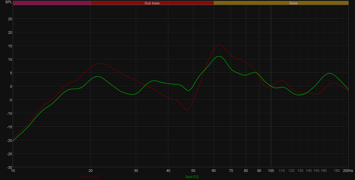 В итоге мы, конечно же, подыскали сабвуферу более правильное положение, получив сходную с первым графиком картину, но уже в точке прослушивания. Настало время посмотреть, что делают предустановленные профили звучания.